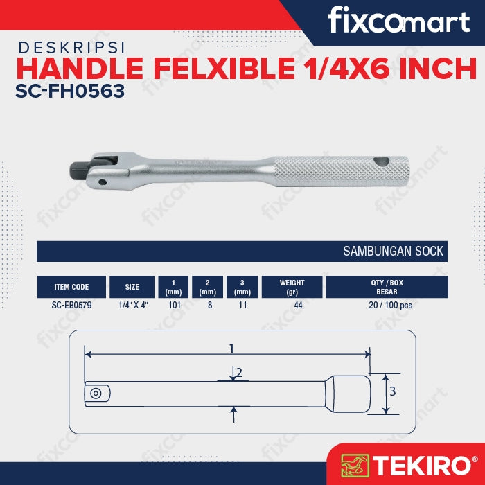 Tekiro Ratchet Handle Felxible 1/4X6 Inch / Gagang Ratchet