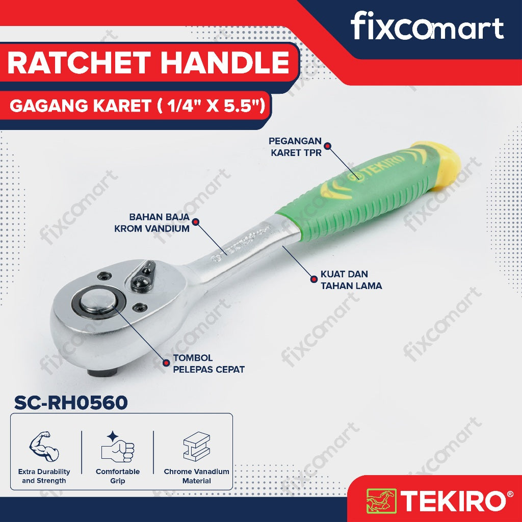 Tekiro Ratchet Handle Gagang Karet 1/4 X 5.5 Inch