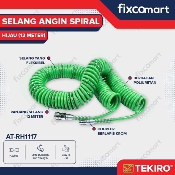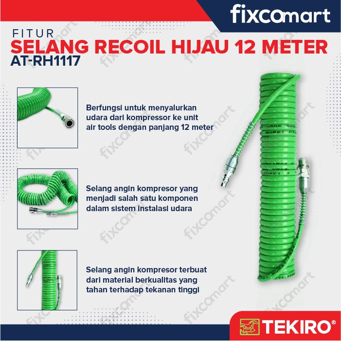 Tekiro Recoil Hose Green 12 m (5X8 mm) / Selang Kompresor