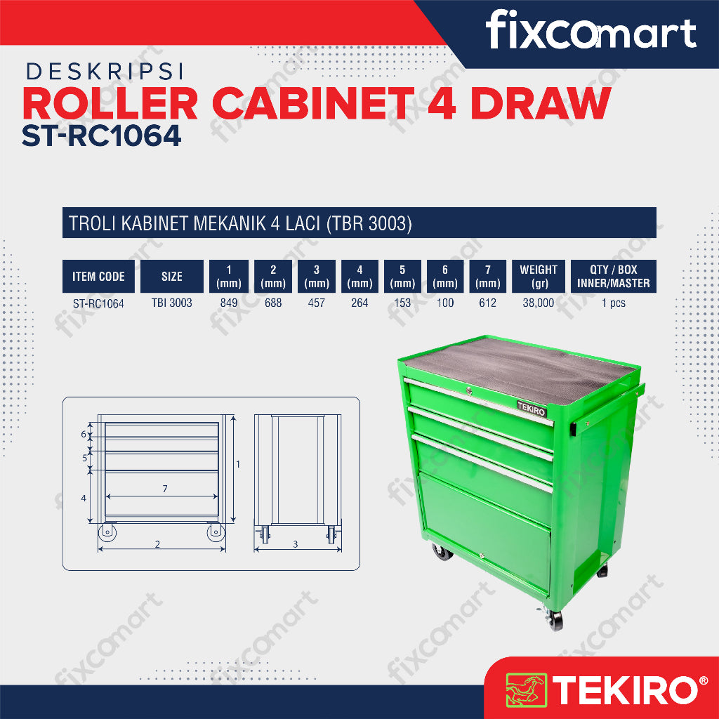 Tekiro Roller Cabinet 4 Draw / Kontak Penyimpanan Perkakas