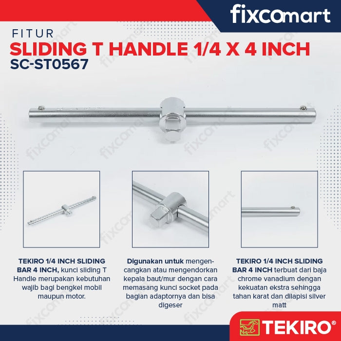 Tekiro Sliding T Handle 1/4 X 4 Inch / Gagang Sock T
