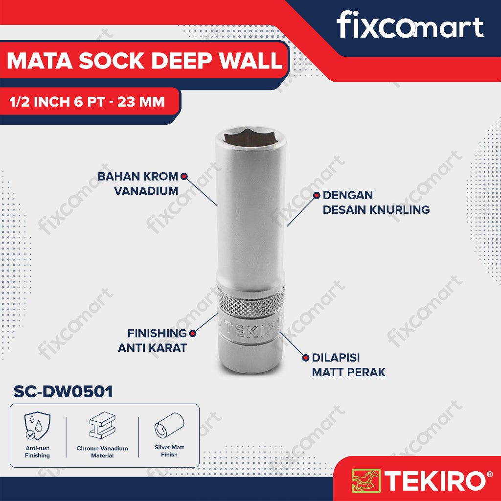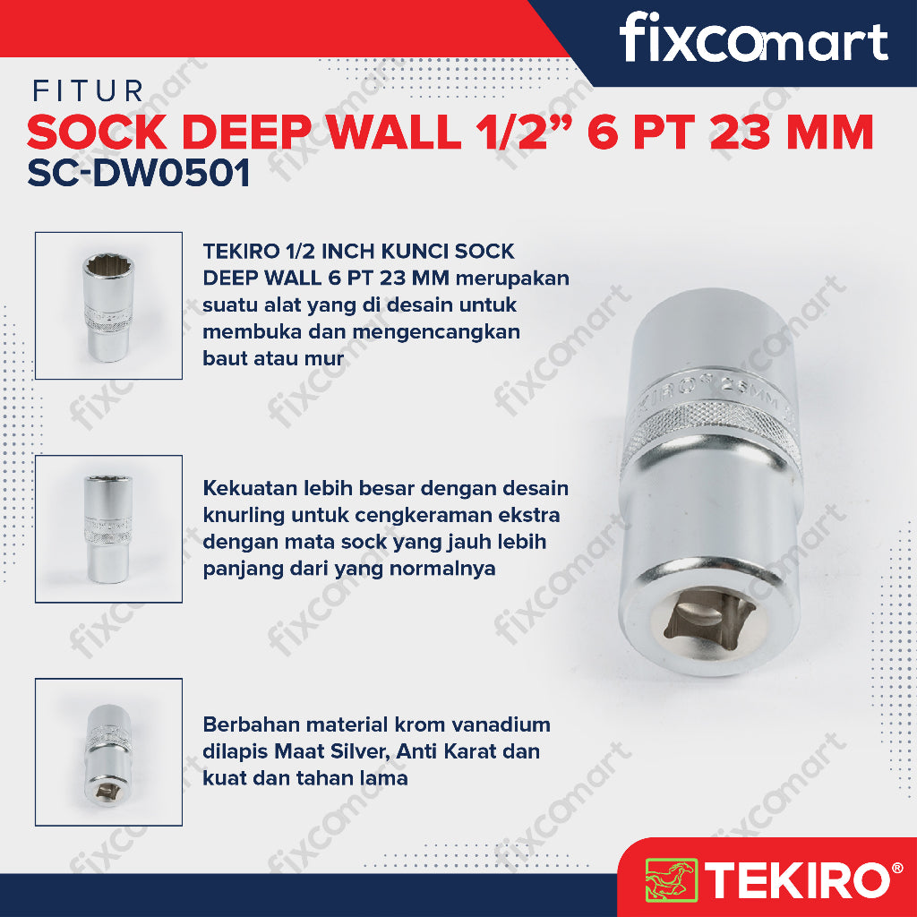 TEKIRO Sock Deep Wall / Mata Sock Panjang 1/2 Inch 6 PT - 23 mm