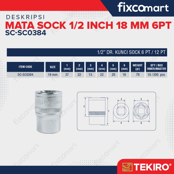 Tekiro Socket 1/2" 6PT 18 mm / Mata Socket
