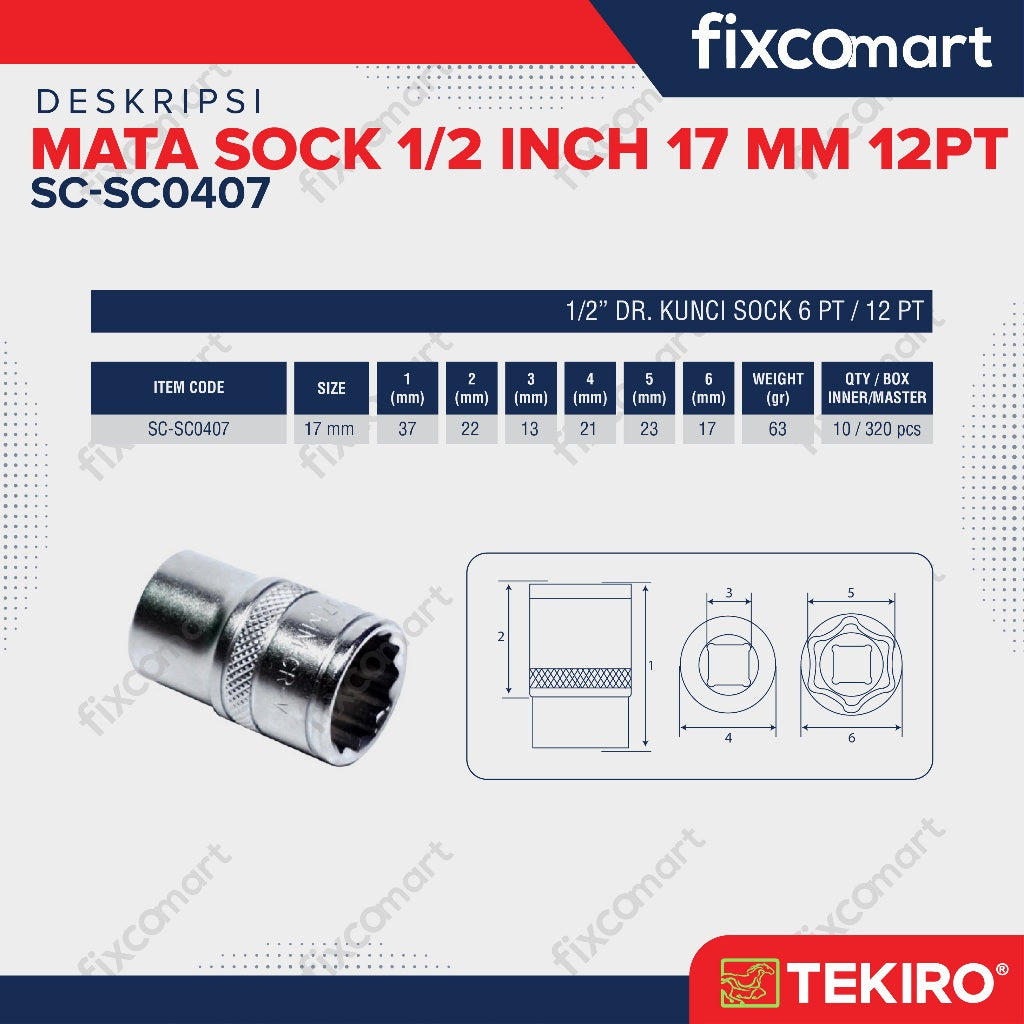 Tekiro Socket 1/2 inch 17 mm 12 PT