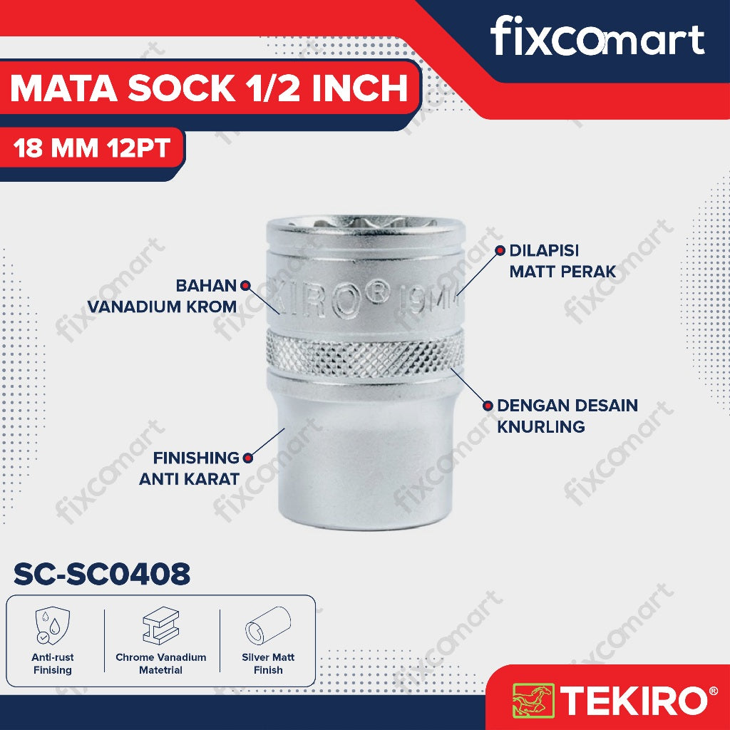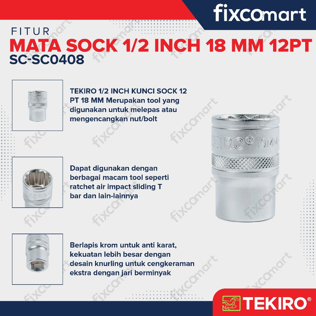 Tekiro Socket 1/2 inch 18 mm 12 PT