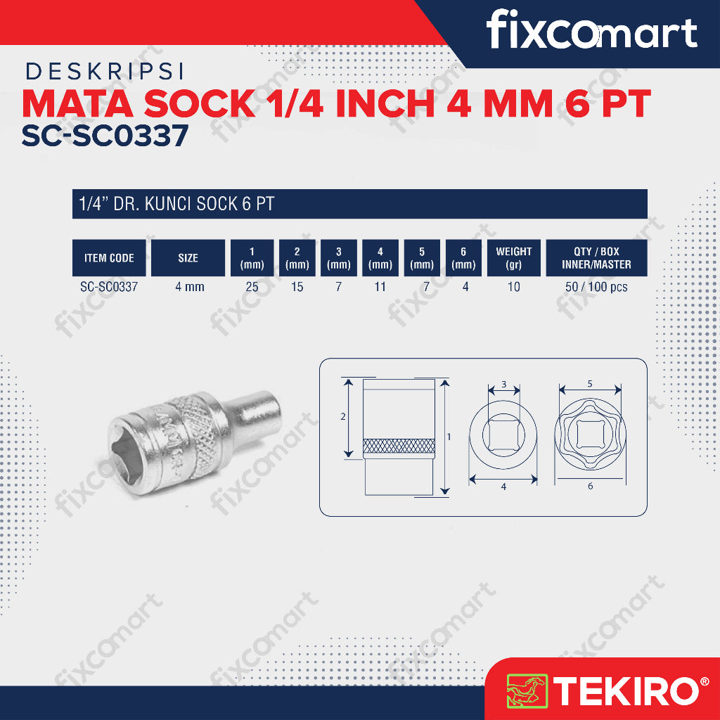 Tekiro Socket 1/4" 4 mm / Mata Socket 1/4 Inch