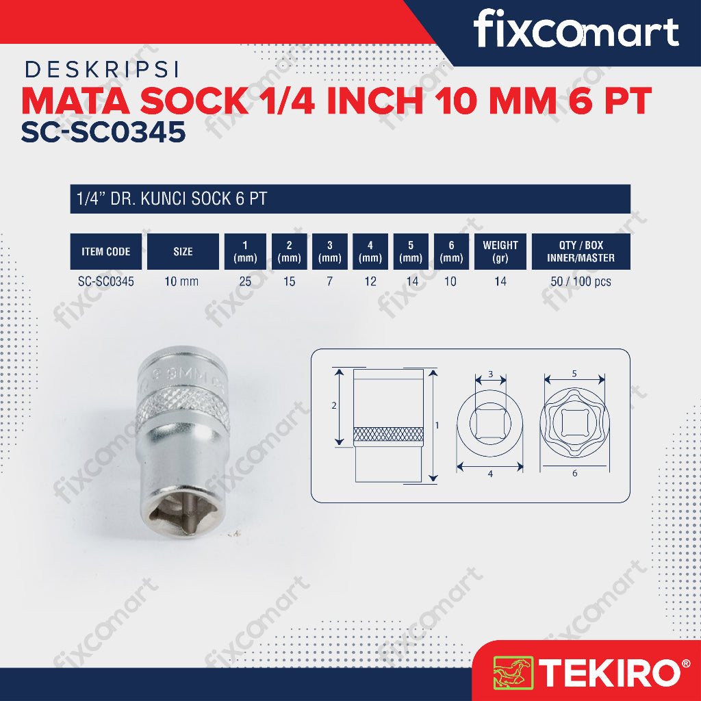 Tekiro Socket 1/4 Inch 10 mm / Mata Socket 1/4"