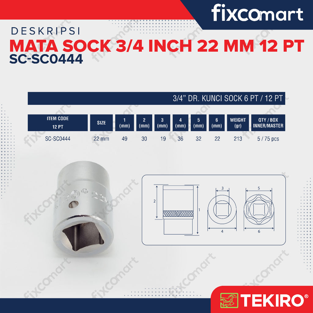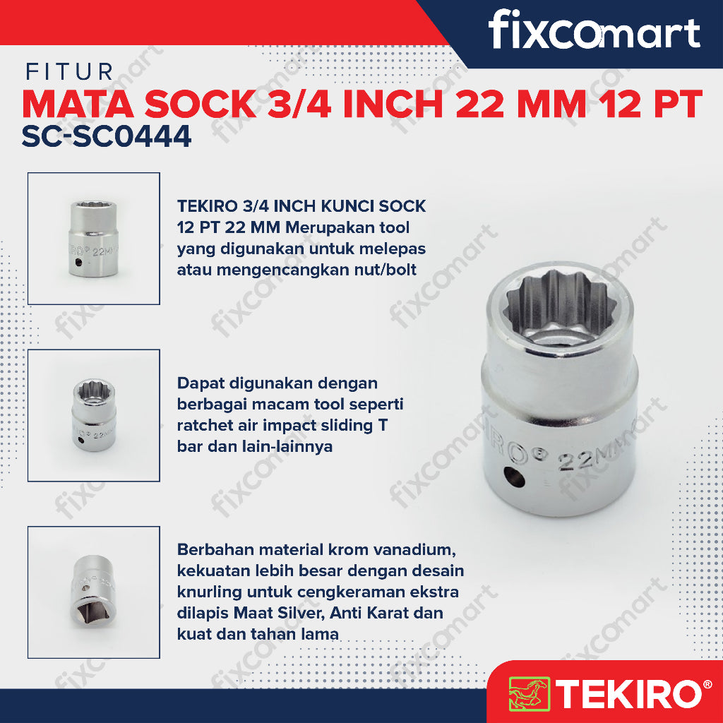 Tekiro Socket 3/4 inch 22 mm 12 PT / Mata Sock 3/4 Inch