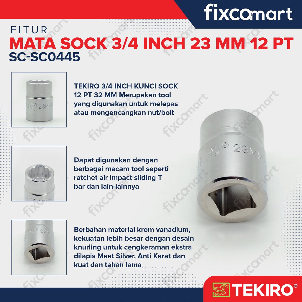 Tekiro Socket 3/4 inch 23 mm 12 PT / Mata Sock 3/4 Inch