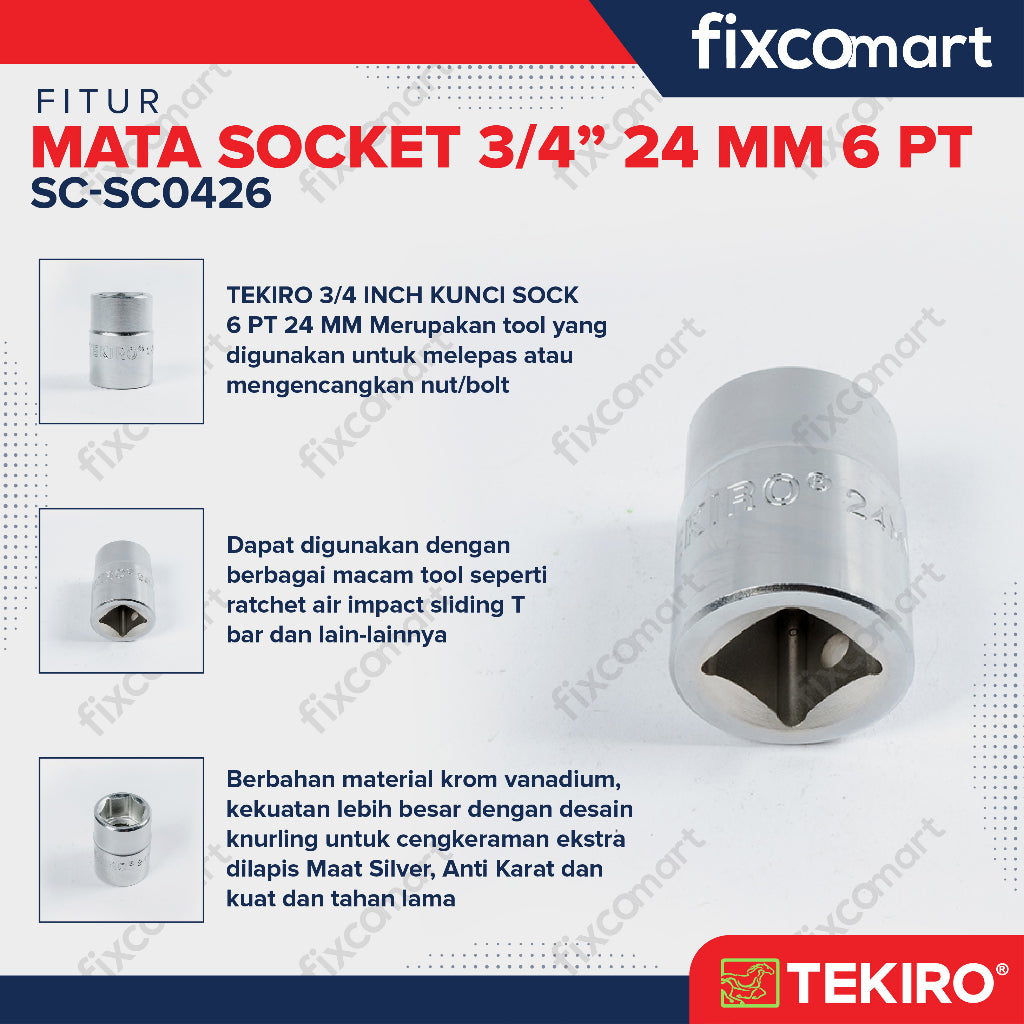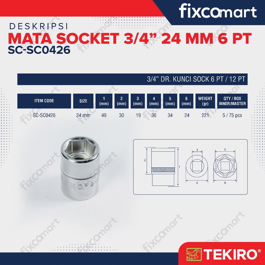 Tekiro Socket 3/4 inch 24 mm 6 PT / Mata Sock 3/4 Inch