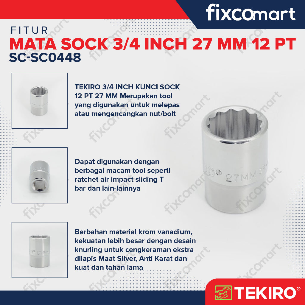 Tekiro Socket 3/4 inch 27 mm 12 PT / Mata Sock 3/4 Inch