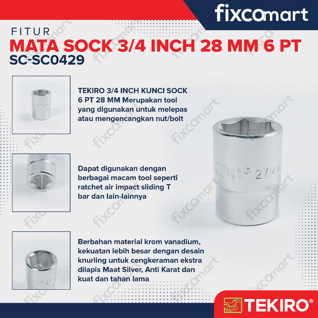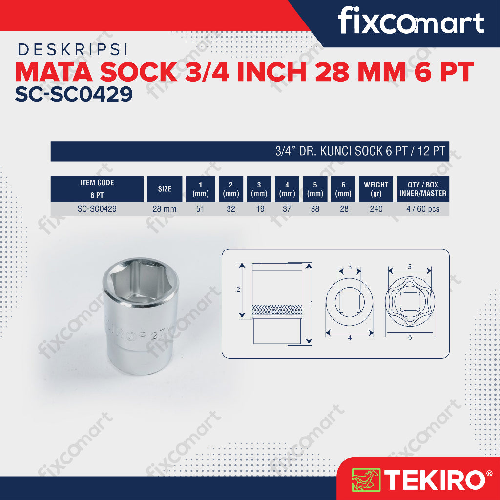 Tekiro Socket 3/4 inch 28 mm 6 PT / Mata Sock 3/4 Inch