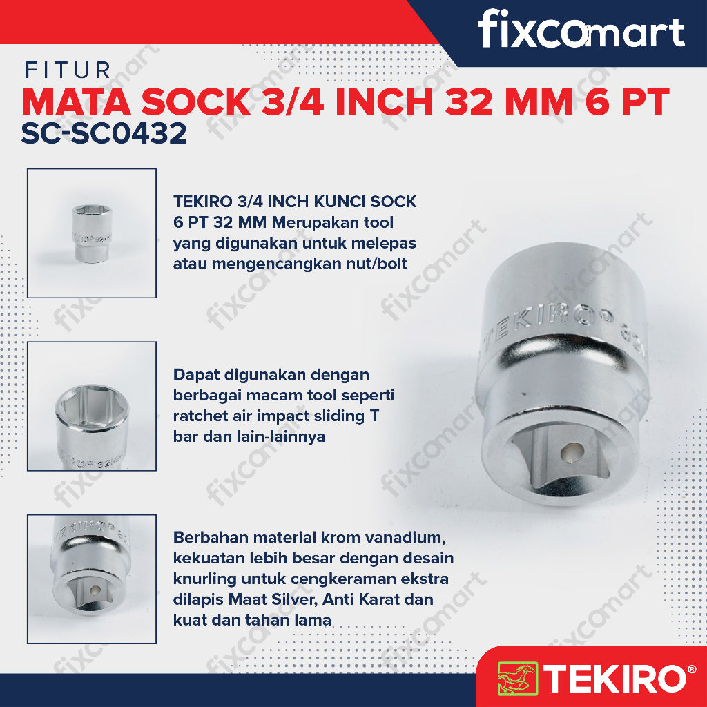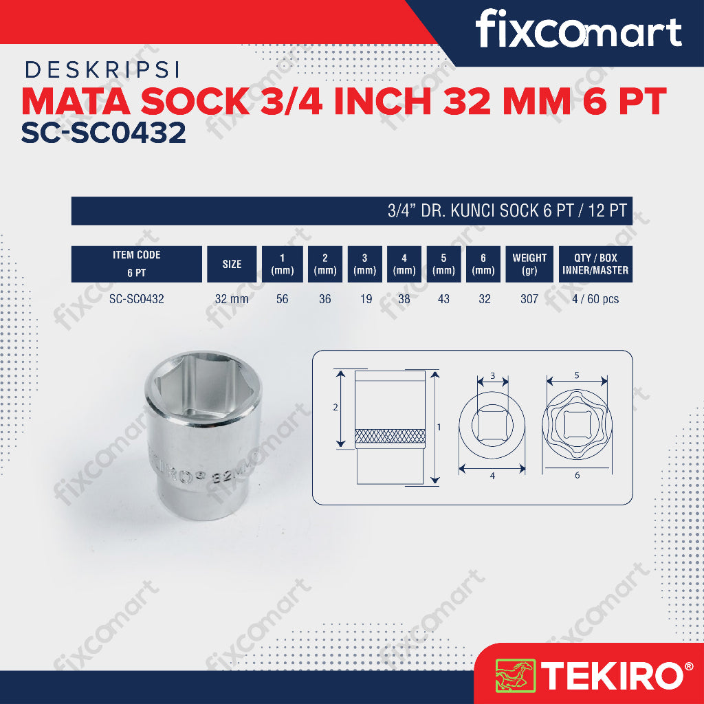 Tekiro Socket 3/4 inch 32 mm 6 PT / Mata Sock 3/4 Inch