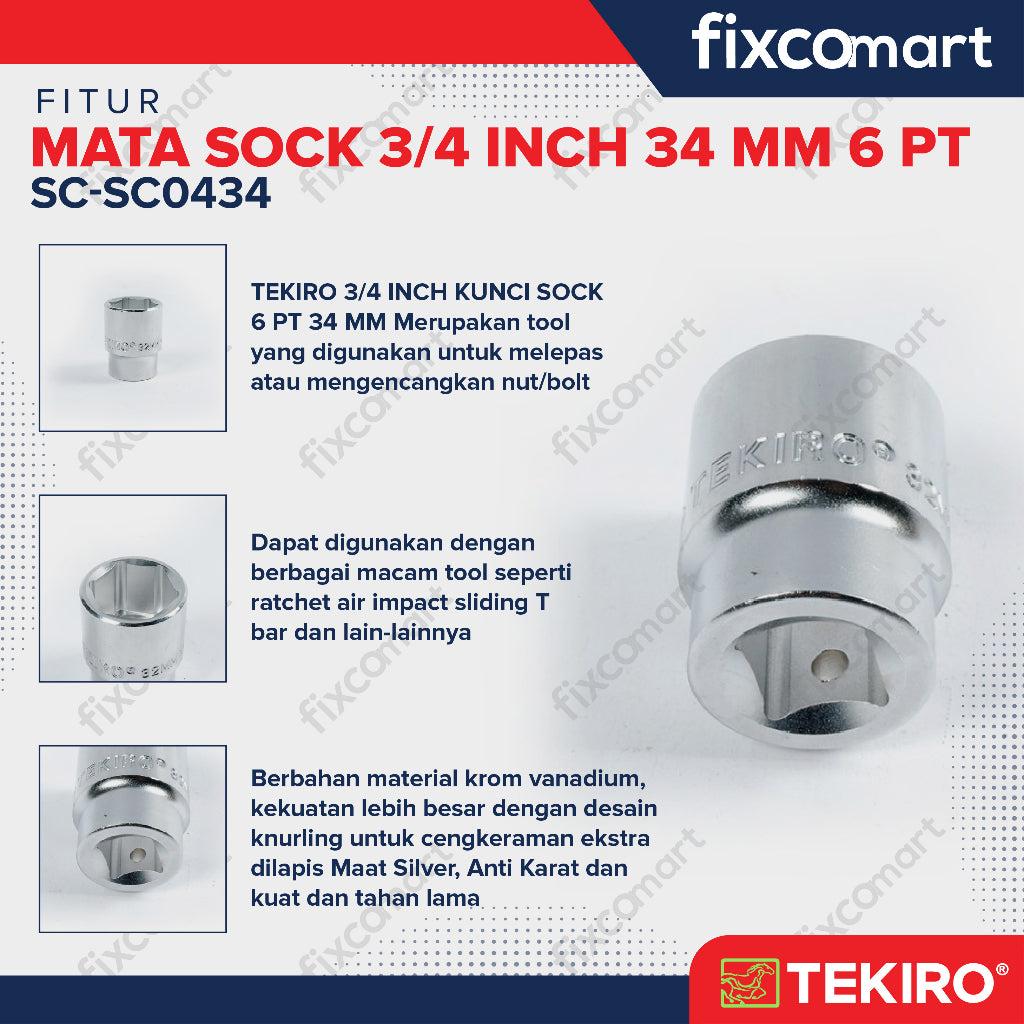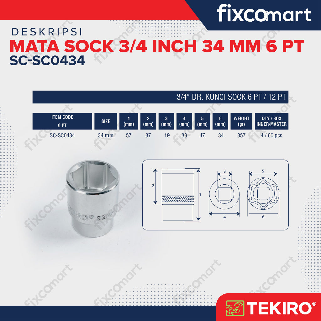 Tekiro Socket 3/4 inch 34 mm 6 PT / Mata Sock 3/4 Inch