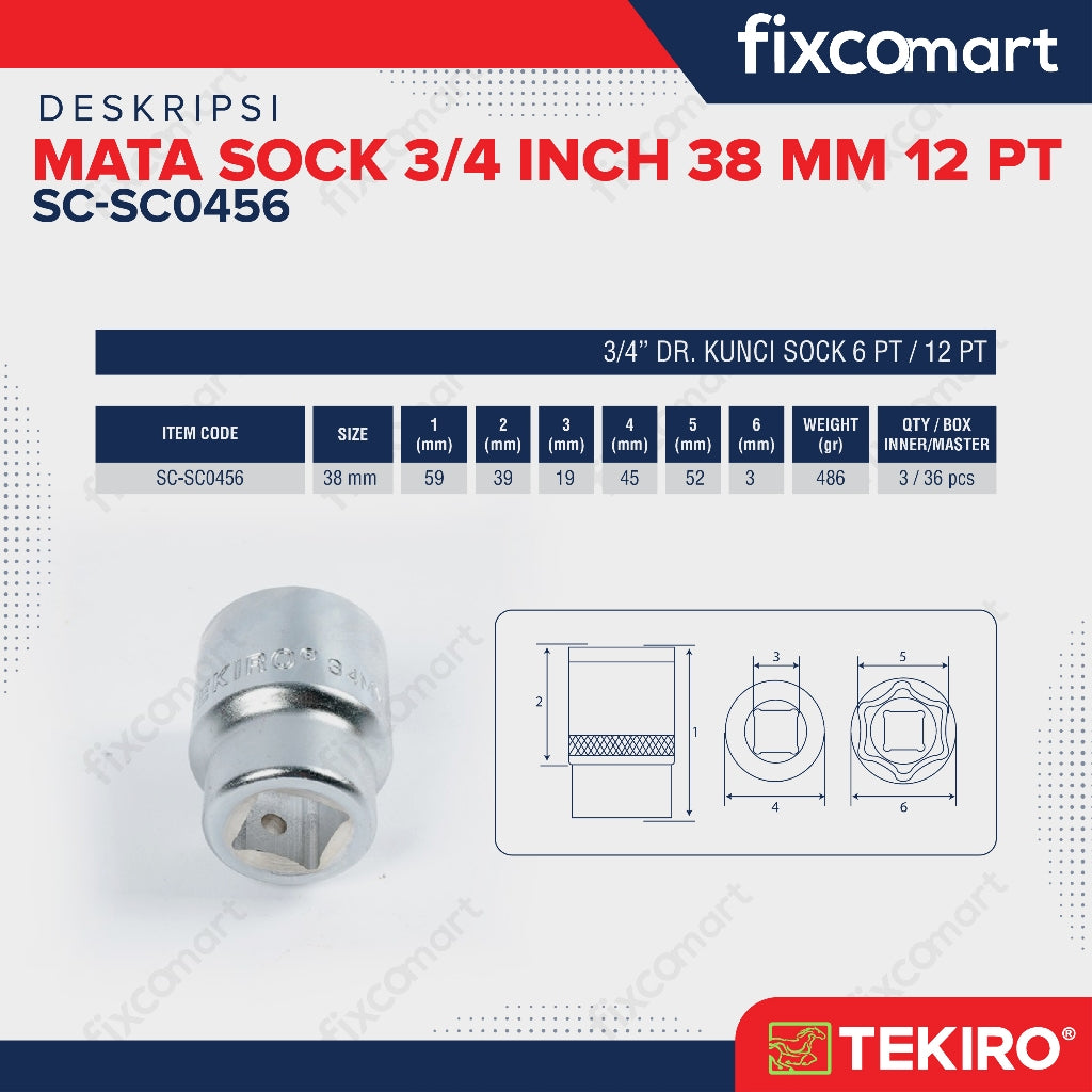 Tekiro Socket 3/4 inch 38 mm 12 PT / Mata Sock 3/4 Inch