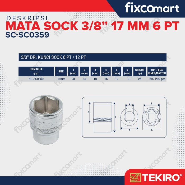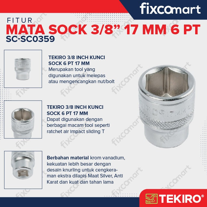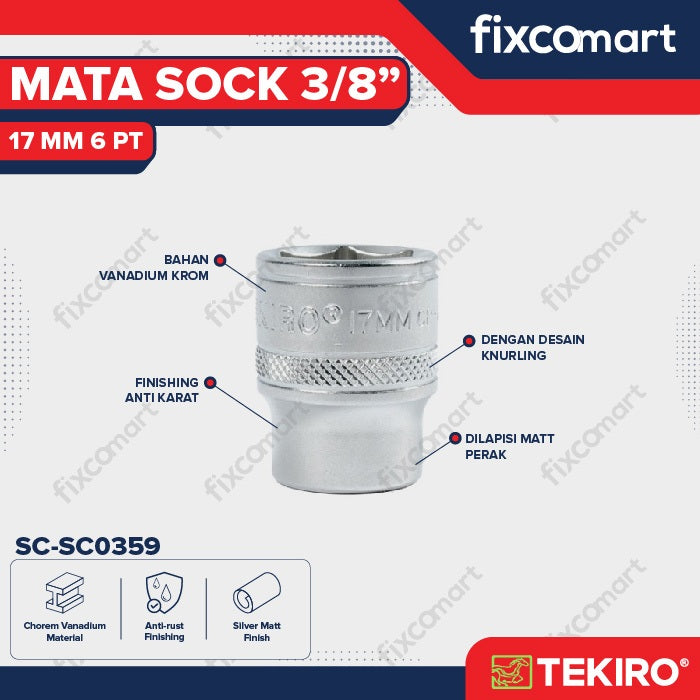 Tekiro Socket 3/8 inch 17 mm 6 PT / Mata Sock 3/8 Inch