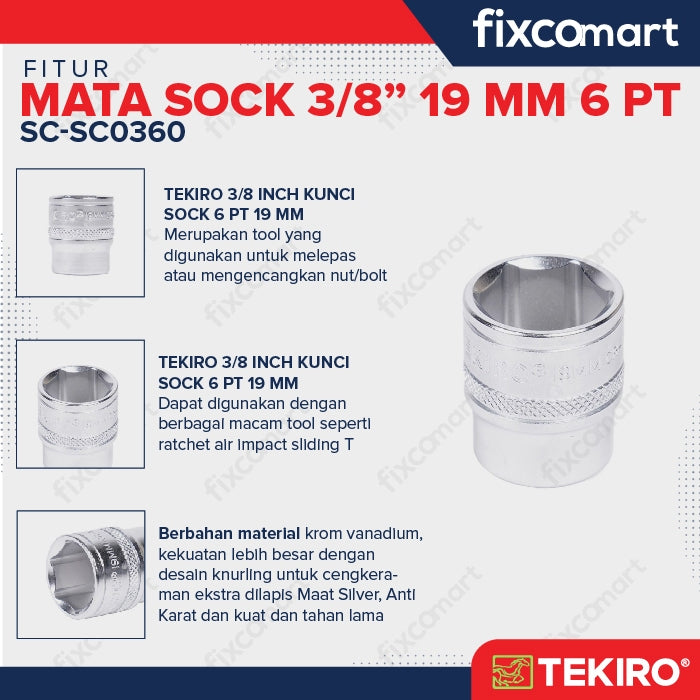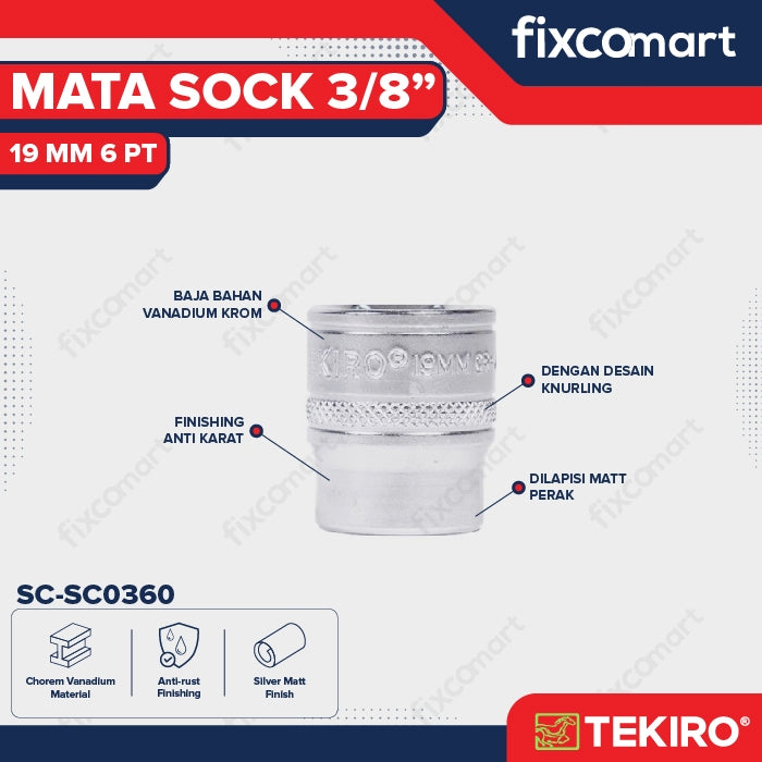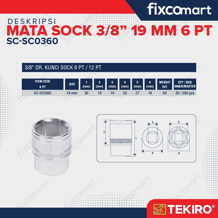 Tekiro Socket 3/8 inch 19 mm 6 PT / Mata Sock 3/8 Inch