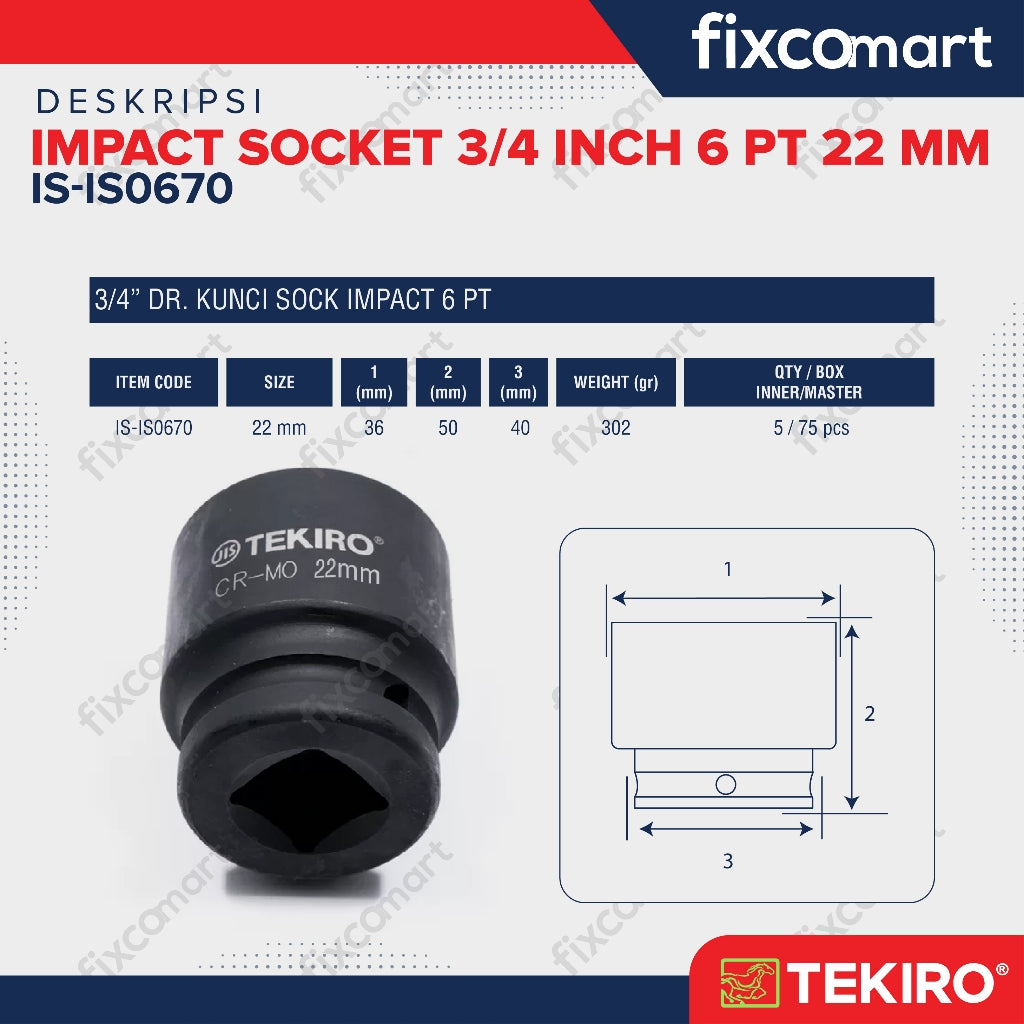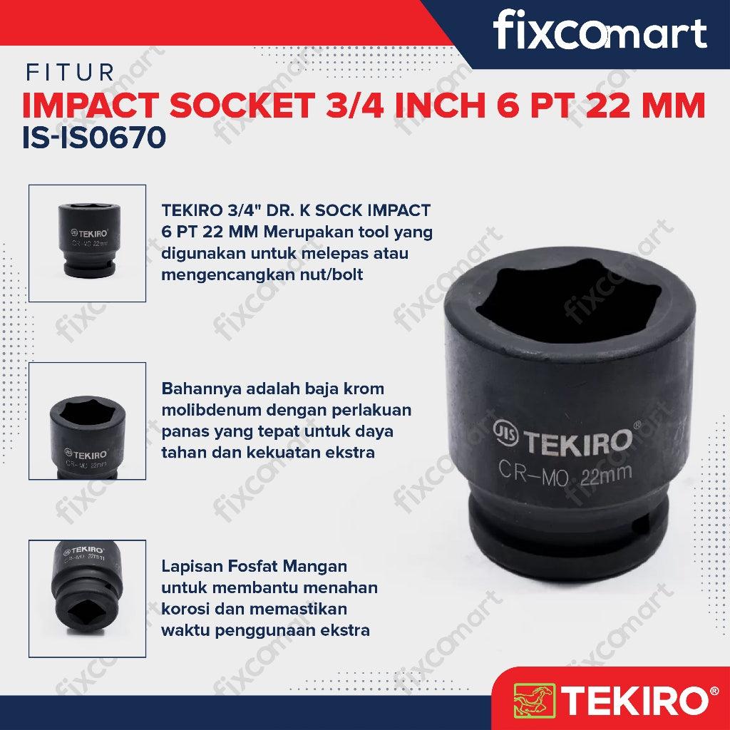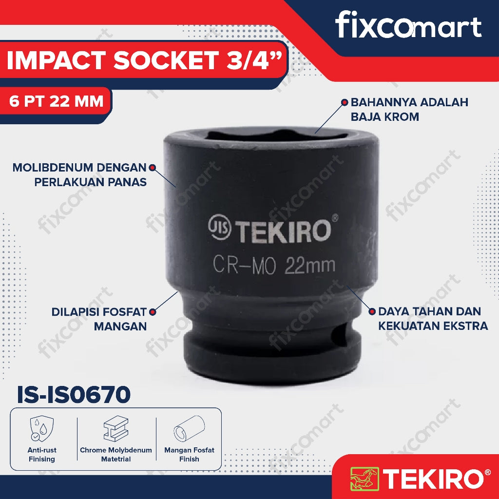 Tekiro Socket Impact 3/4 Inch 22 Mm 6 Pt / Mata Sock Impact