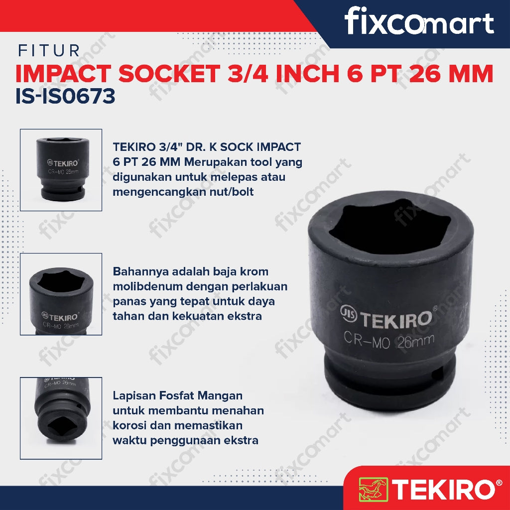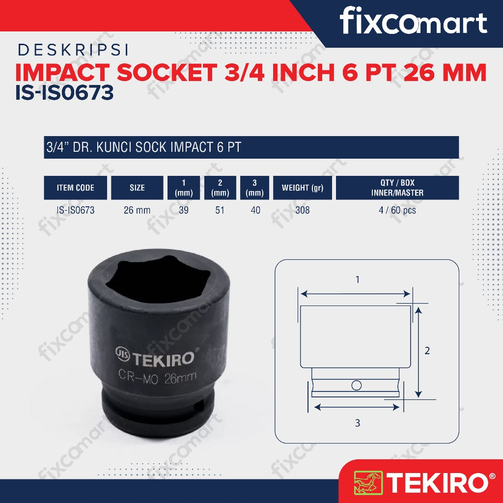 Tekiro Socket Impact 3/4 Inch 26 Mm 6 Pt / Mata Sock Impact