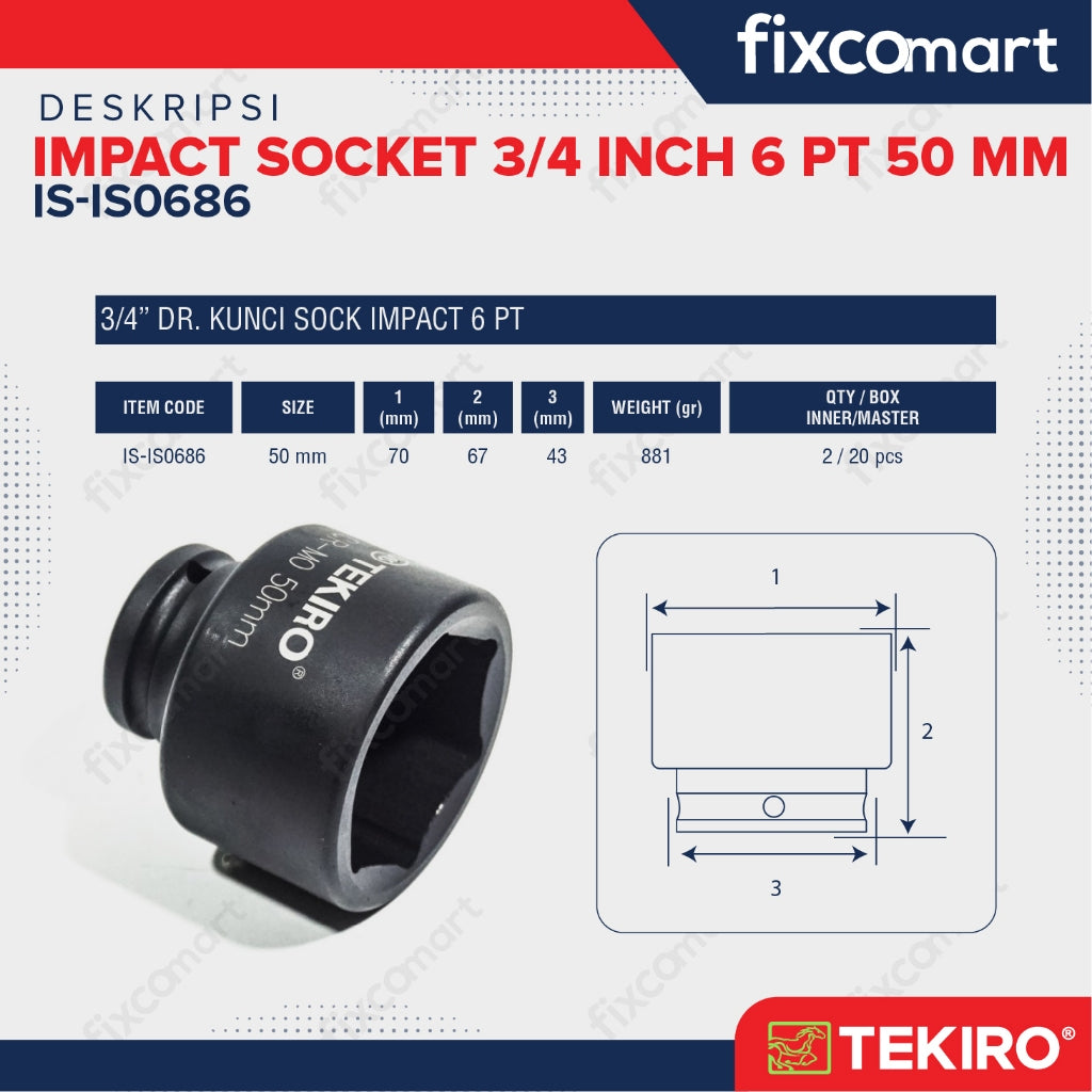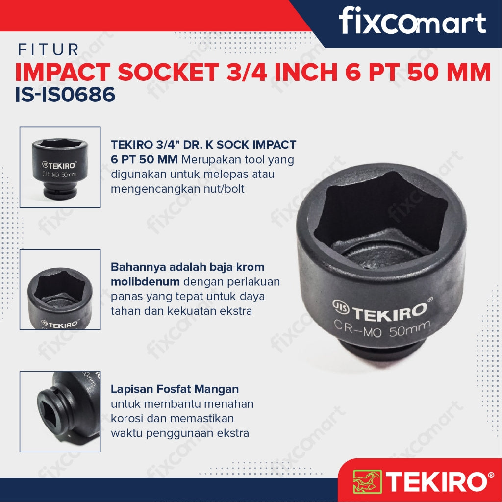 Tekiro Socket Impact 3/4 Inch 50 Mm 6 Pt / Mata Sock Impact