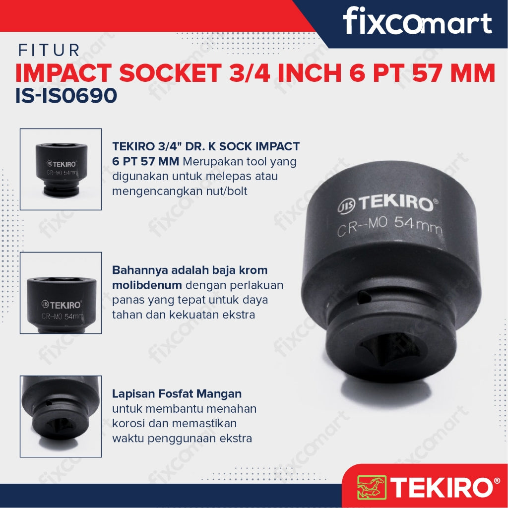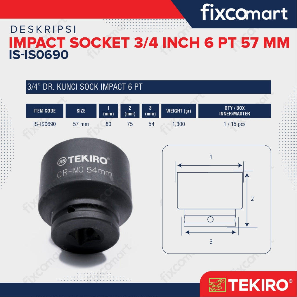 Tekiro Socket Impact 3/4 Inch 57 Mm 6 Pt / Mata Sock Impact