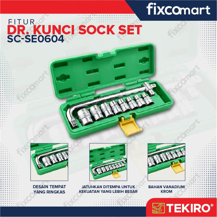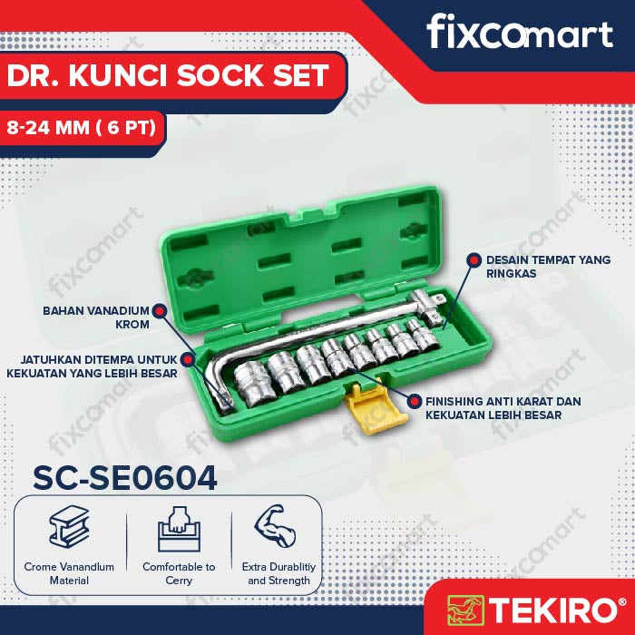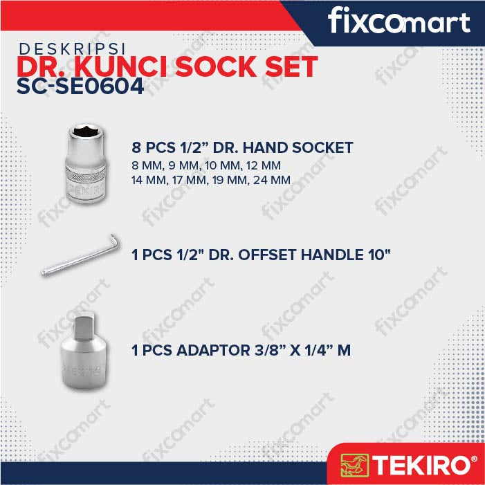 Tekiro Socket Set 1/2 Inch 10 Pcs 6Pt (8-24 Mm) Box Plastik