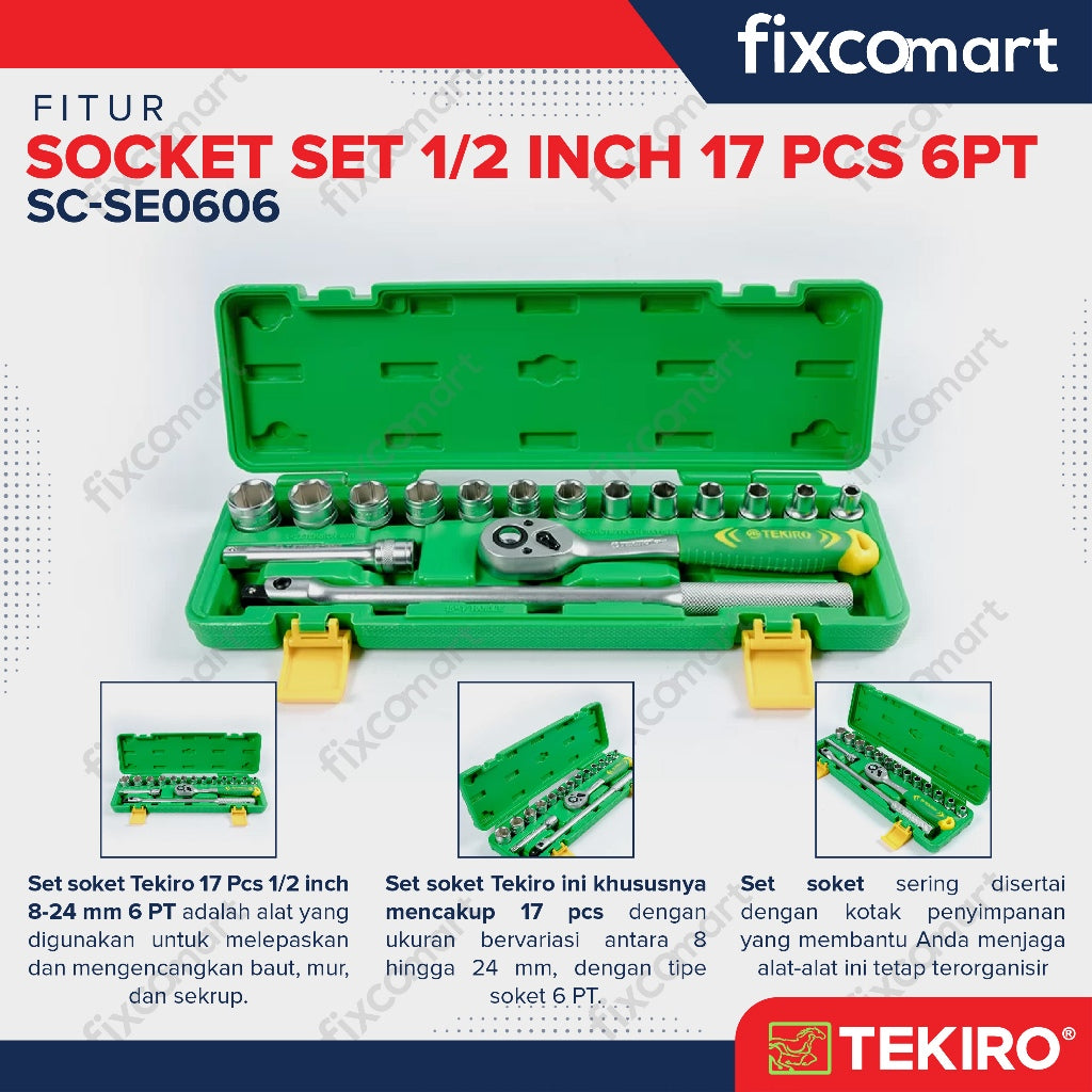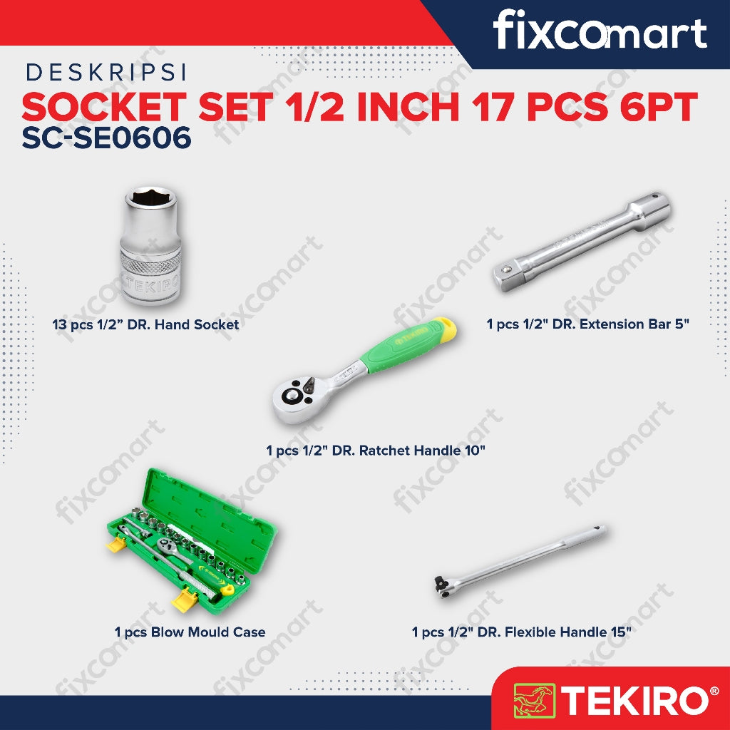 Tekiro Socket Set 1/2 inch 17 Pcs 8-24 mm 6PT Box Plastik