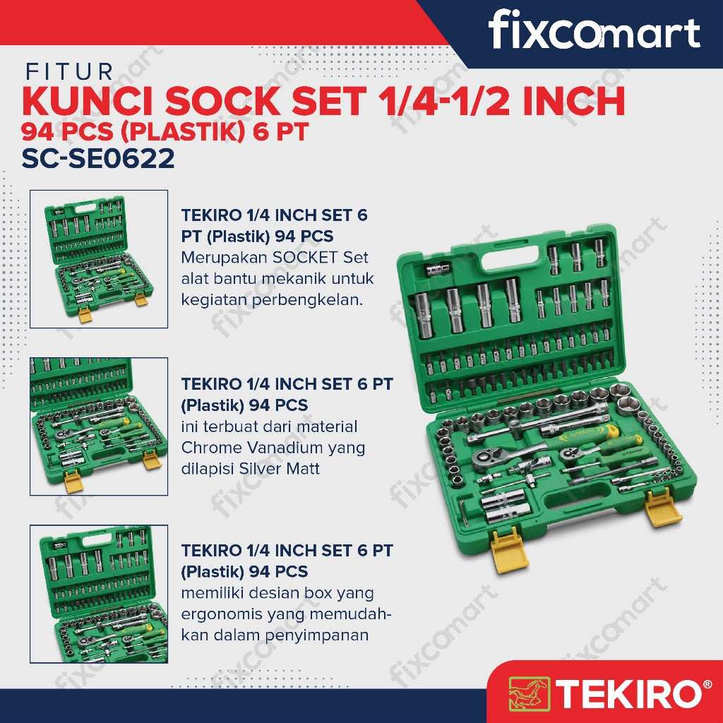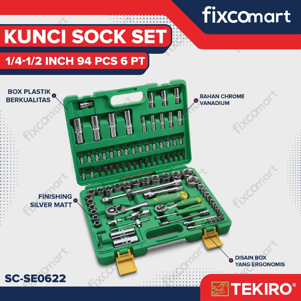 Tekiro Socket Set 1/4-1/2 Inch 94 Pcs 6PT / Tekiro Sock Set 94 Pcs