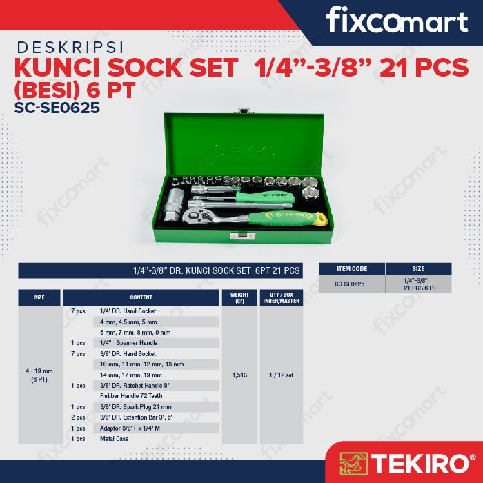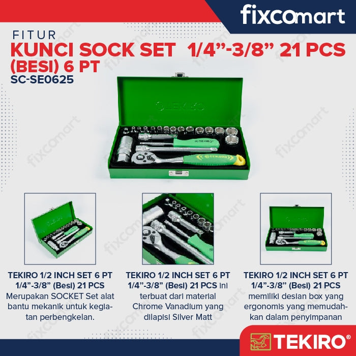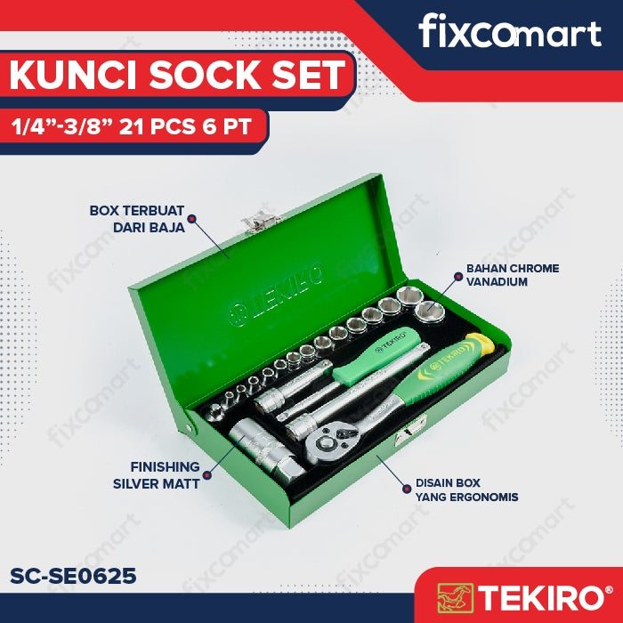 Tekiro Socket Set 1/4 - 3/8 Inch 21 Pcs 6Pt (Box Kaleng) / Tekiro Kunci Socket Set