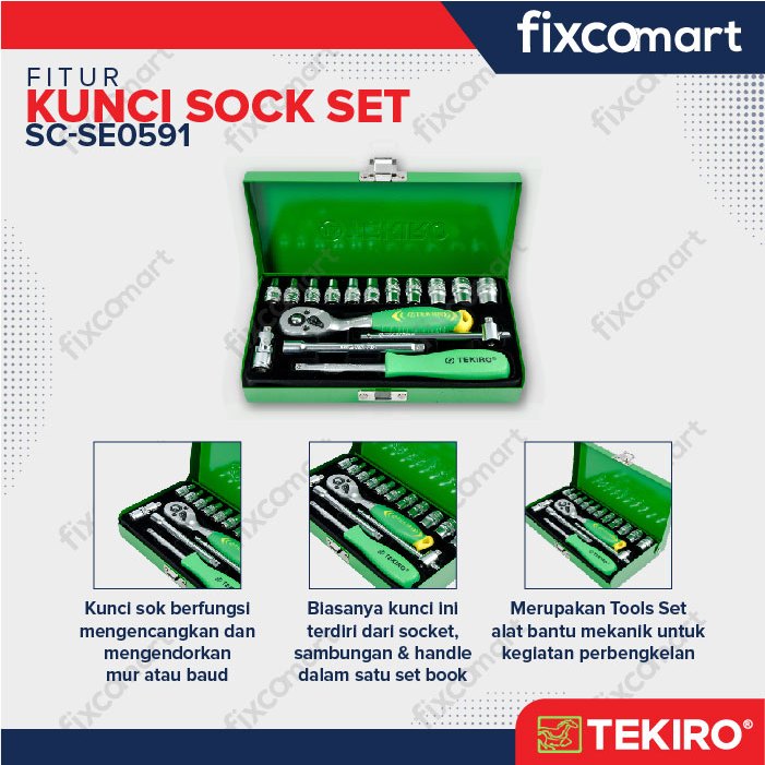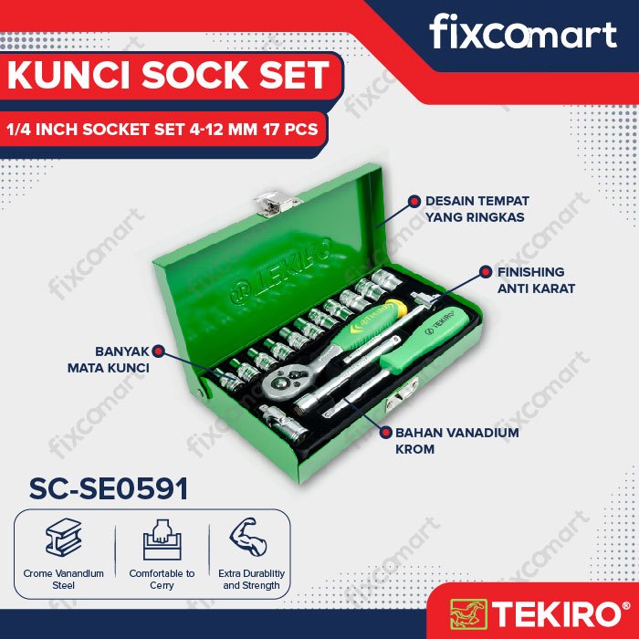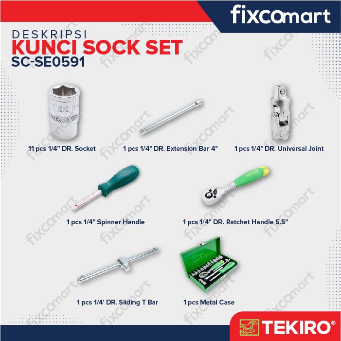 Tekiro Socket Set 1/4 Inch 17 Pcs 6Pt (4-12 Mm) Box Kaleng / Tekiro Kunci Sock Set