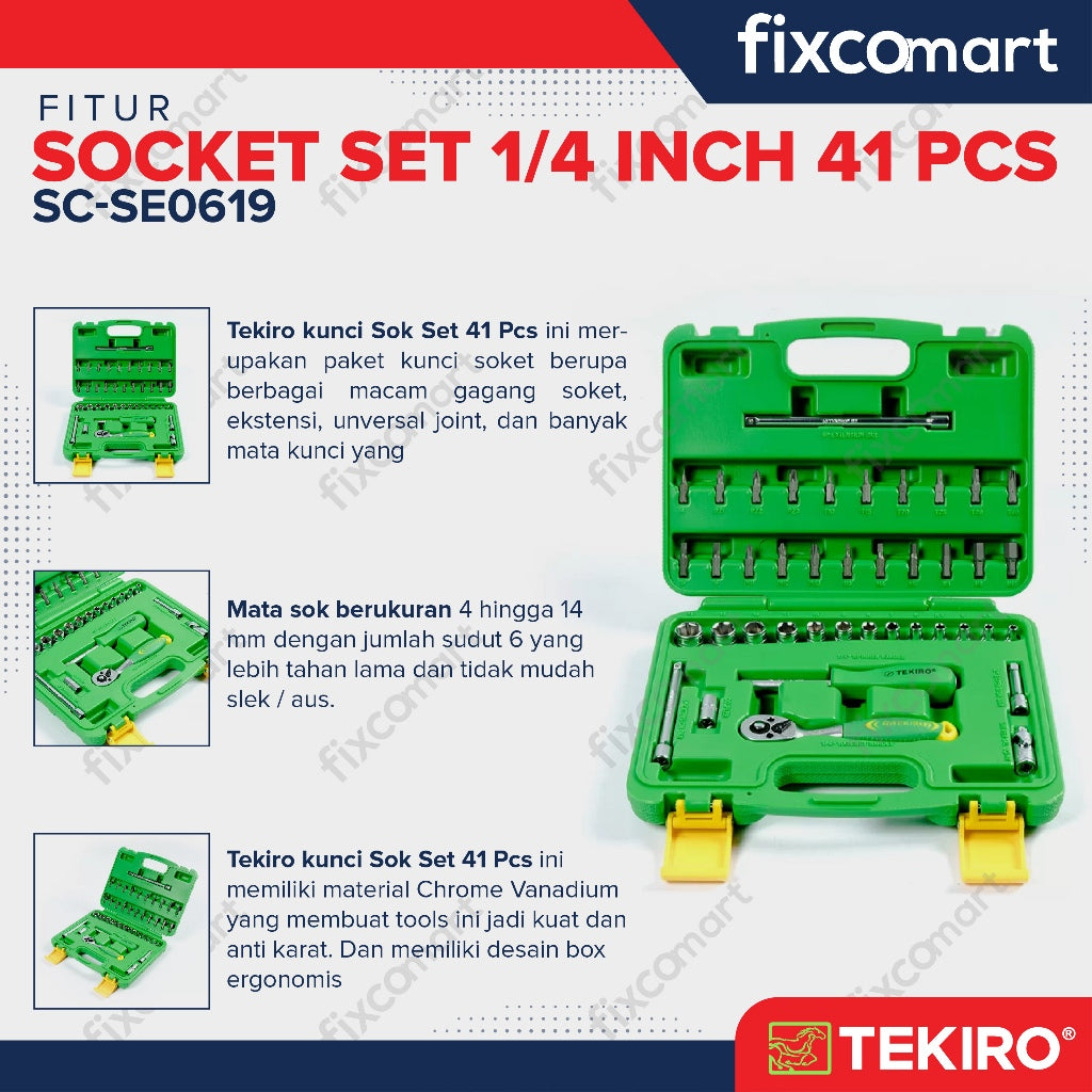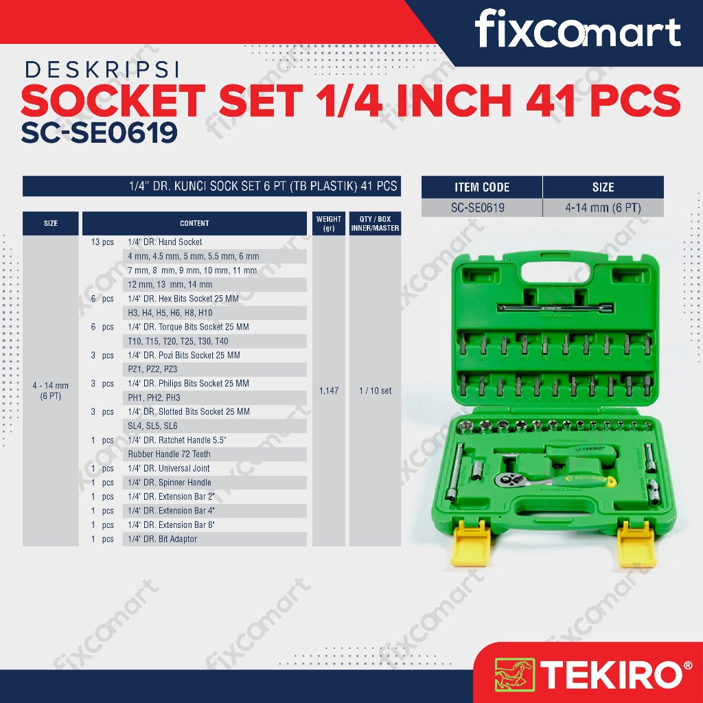 Tekiro Socket Set 1/4 Inch 41 Pcs (4-14 Mm) 6Pt / Tekiro Sock Set 41 Pcs