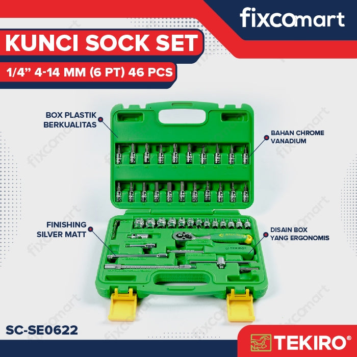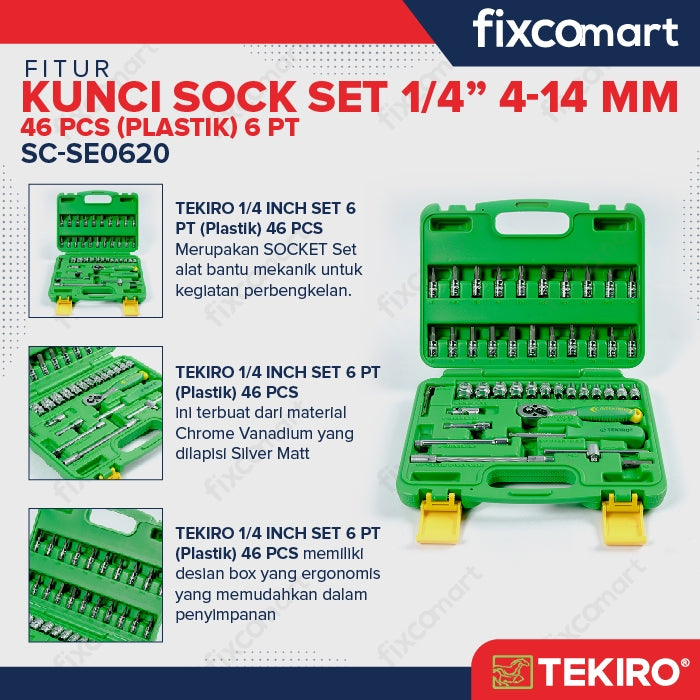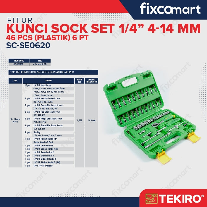 Tekiro Socket Set 1/4 Inch 46 Pcs (4-14 Mm) 6Pt / Tekiro Sock Set 46 Pcs
