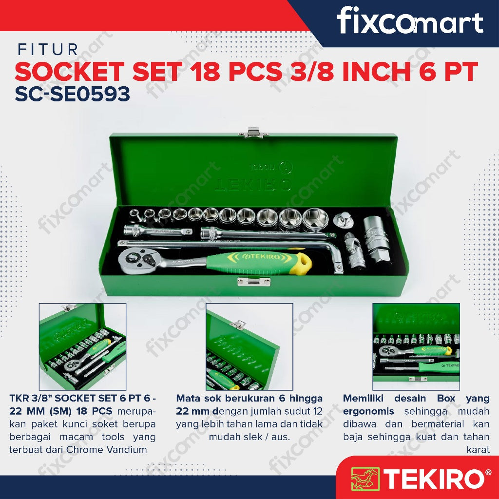 Tekiro Socket Set 18 Pcs 3/8 inch 6-22 mm 6PT / Sock Set