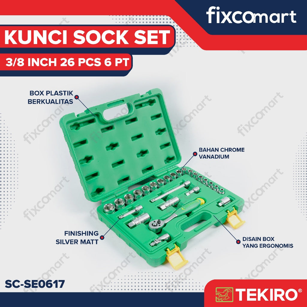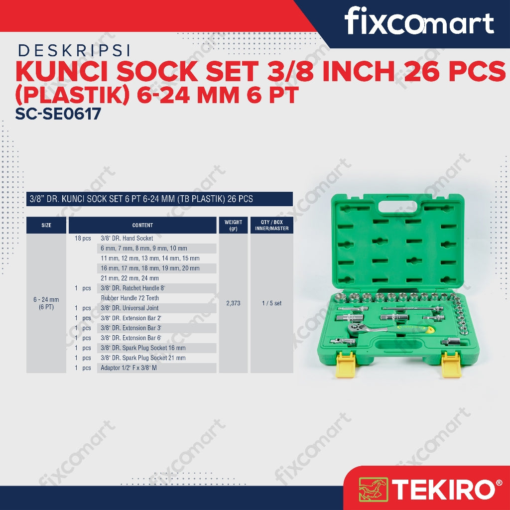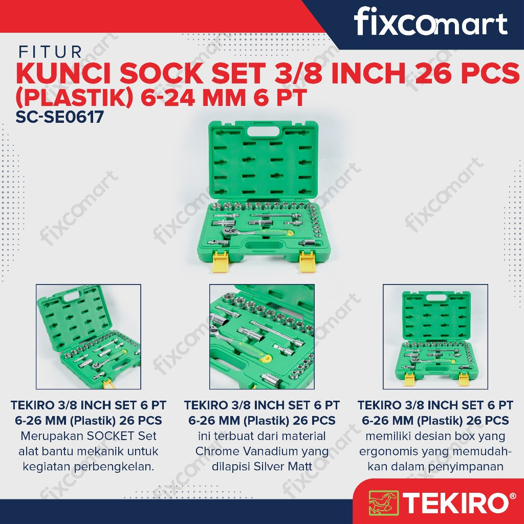 Tekiro Socket Set 26 Pcs 3/8 inch 6-24 mm 6PT Box Plastik