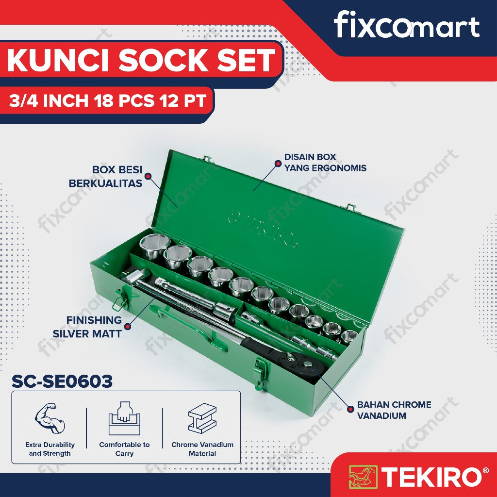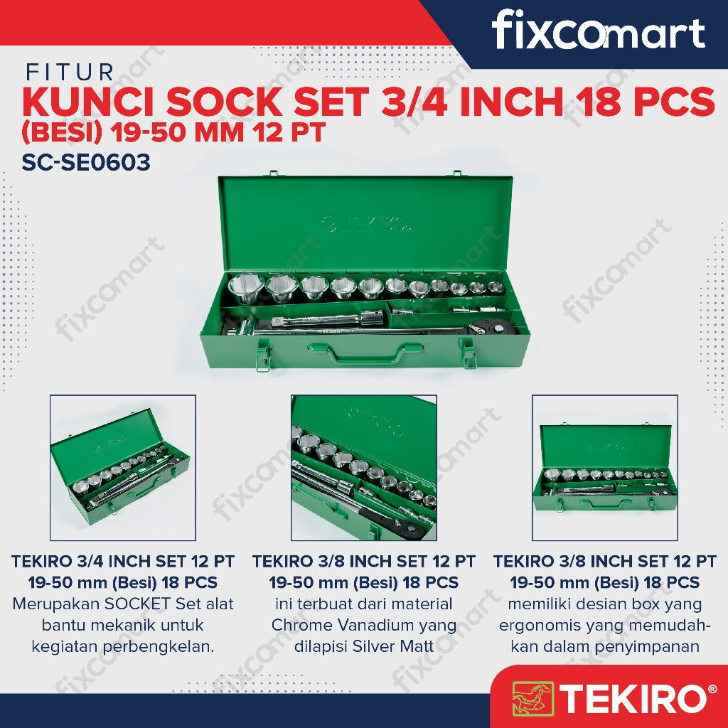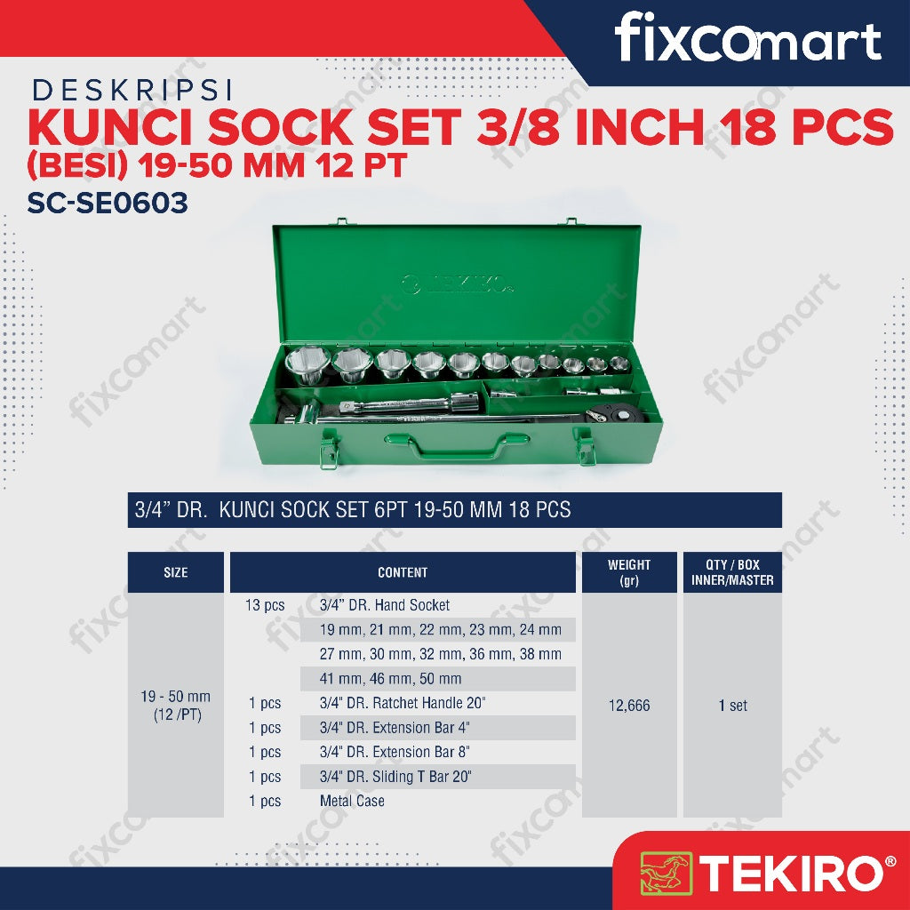 Tekiro Socket Set 3/4 Inch 18 Pcs (19-50 Mm) 12Pt / Tekiro Kunci Sock Set
