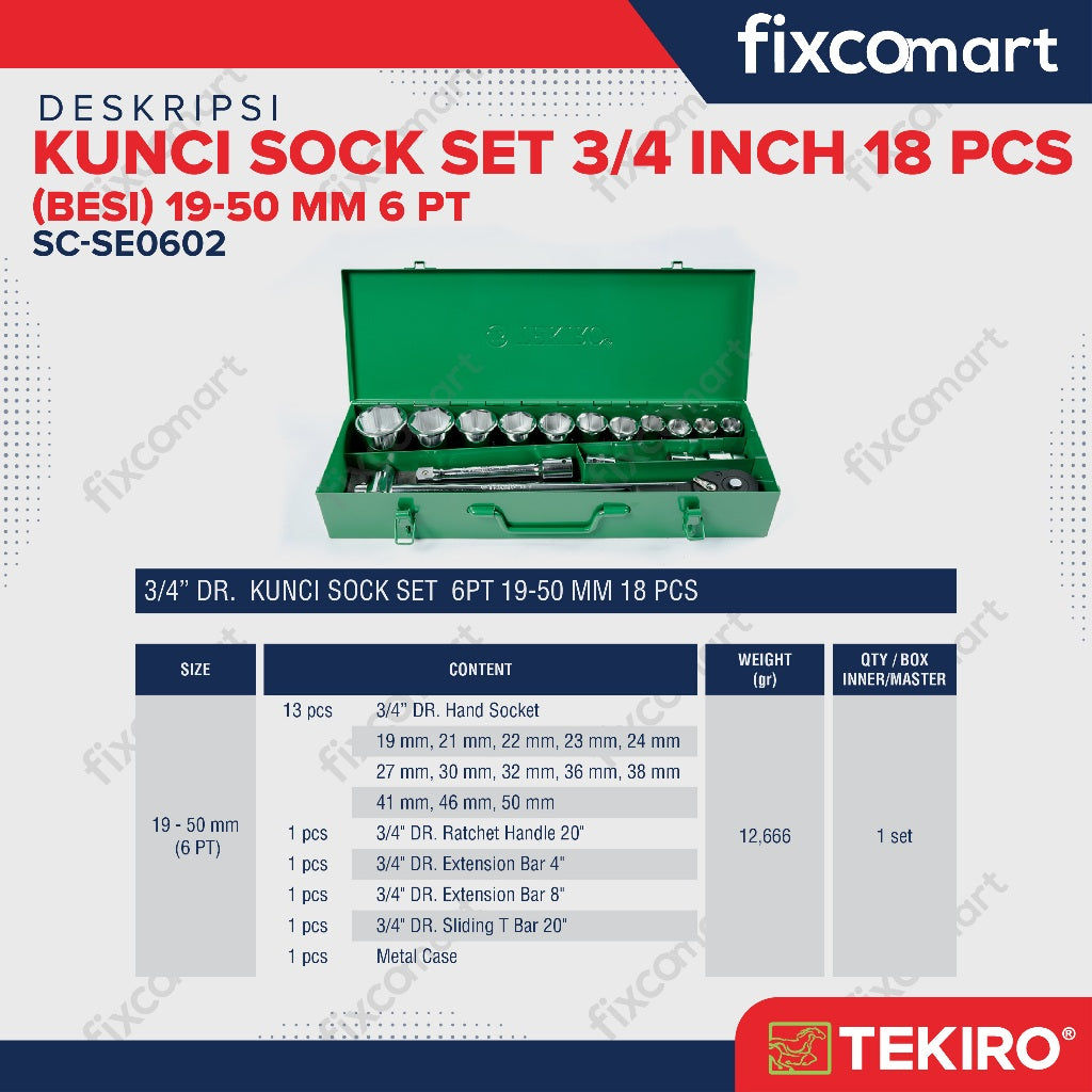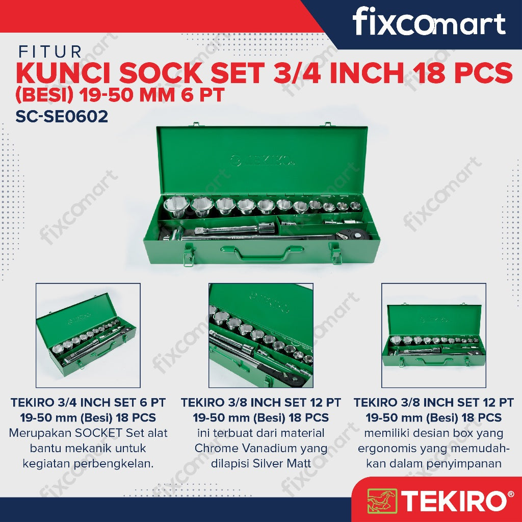 Tekiro Socket Set 3/4 inch 18 Pcs 19-50 mm 6PT Box Kaleng