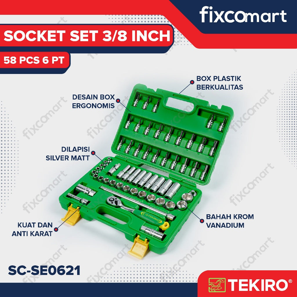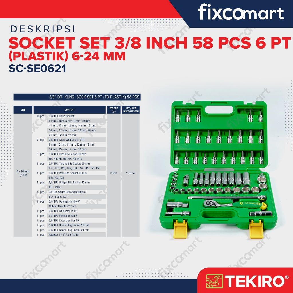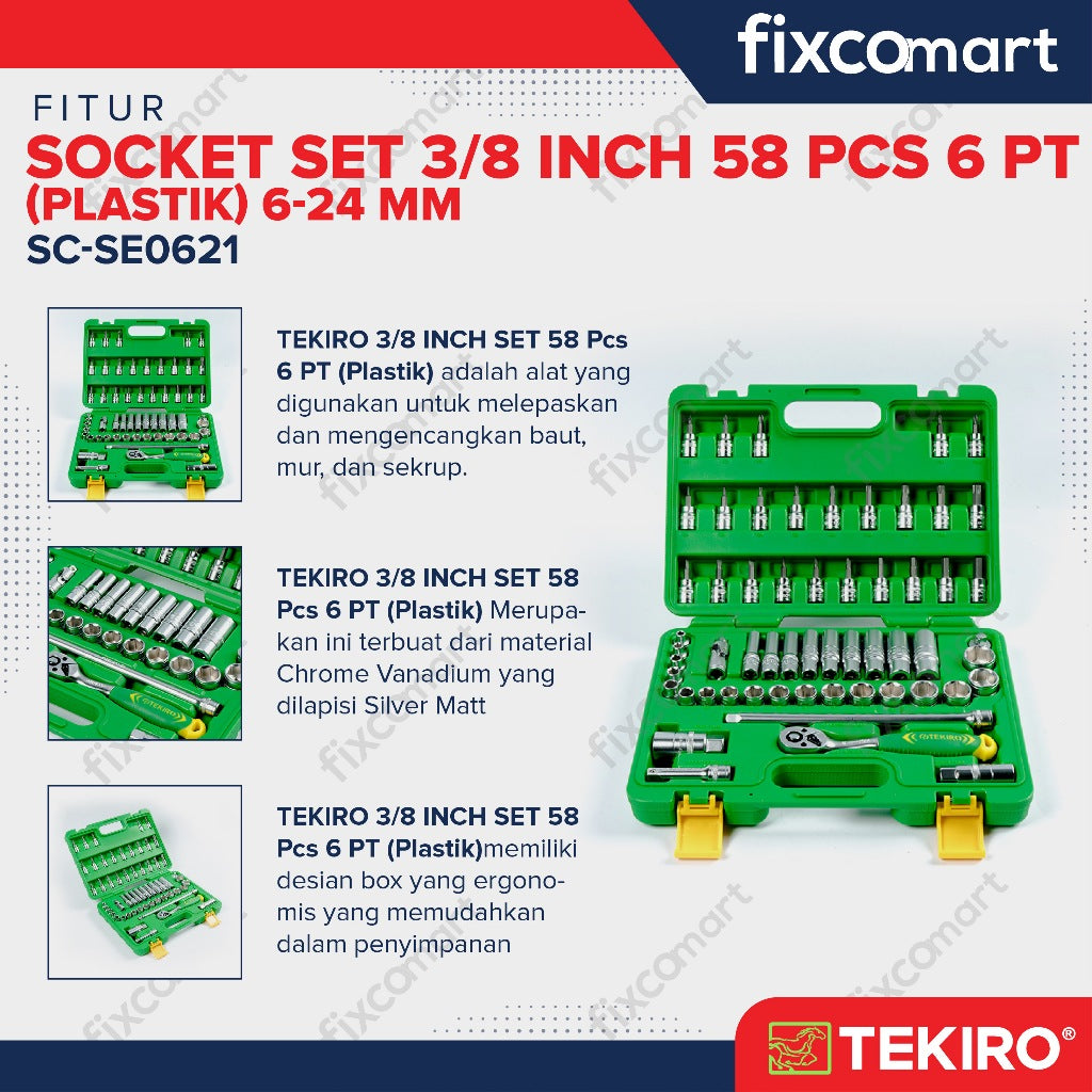 Tekiro Socket Set 3/8 Inch 58 Pcs (6-24 Mm) 6Pt / Tekiro Sock Set 58 Pcs