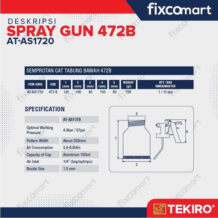 Tekiro Spray Gun 472B / Alat Semprot Cat Tabung Bawah