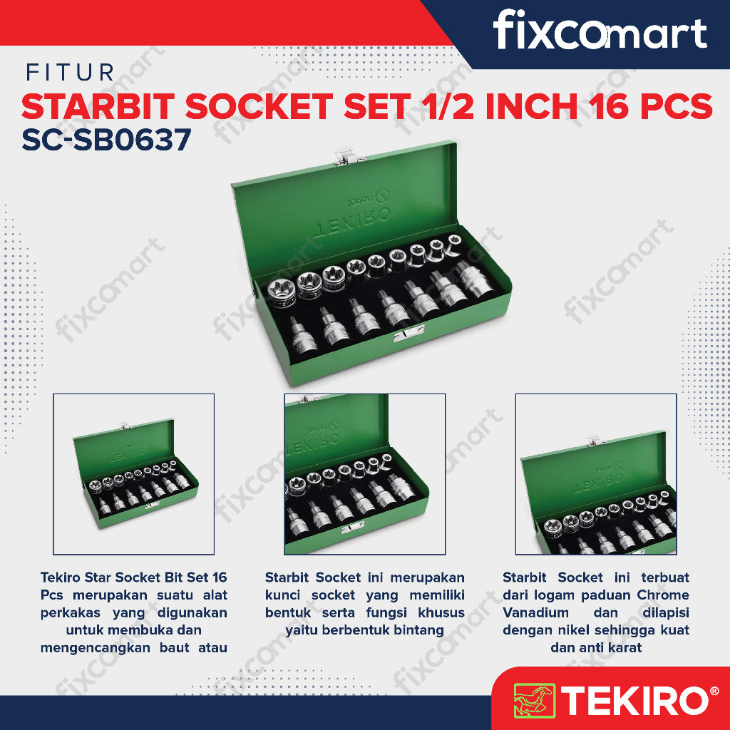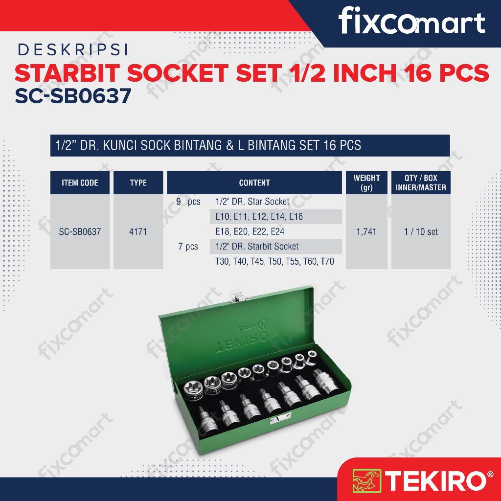 Tekiro Starbit Socket Set 1/2 Inch 16 Pcs / Mata Sock L Bintang