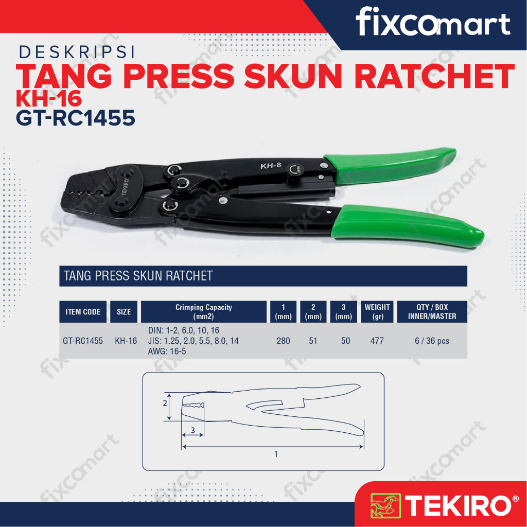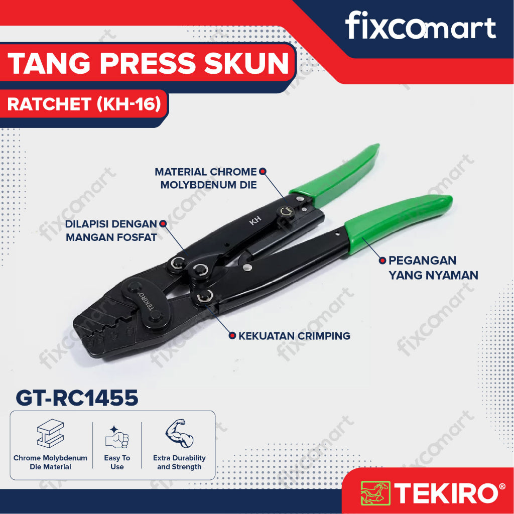 Tang krimping untuk membentuk terminal pada ujung kabel, agar memiliki bentuk dan ukuran yang sesuai agar dapat dipasangkan pada terminal/socket yg diinginkan. Terbuat dari material chrome-vanadium yang berkualitas, alat ini juga memiliki ratchet action untuk memberikan kekuatan krimping yang stabil.