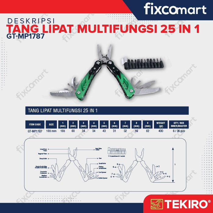 TEKIRO TANG LIPAT MULTIFUNGSI 25 IN 1 - MULTIFUNCTION PLIERS