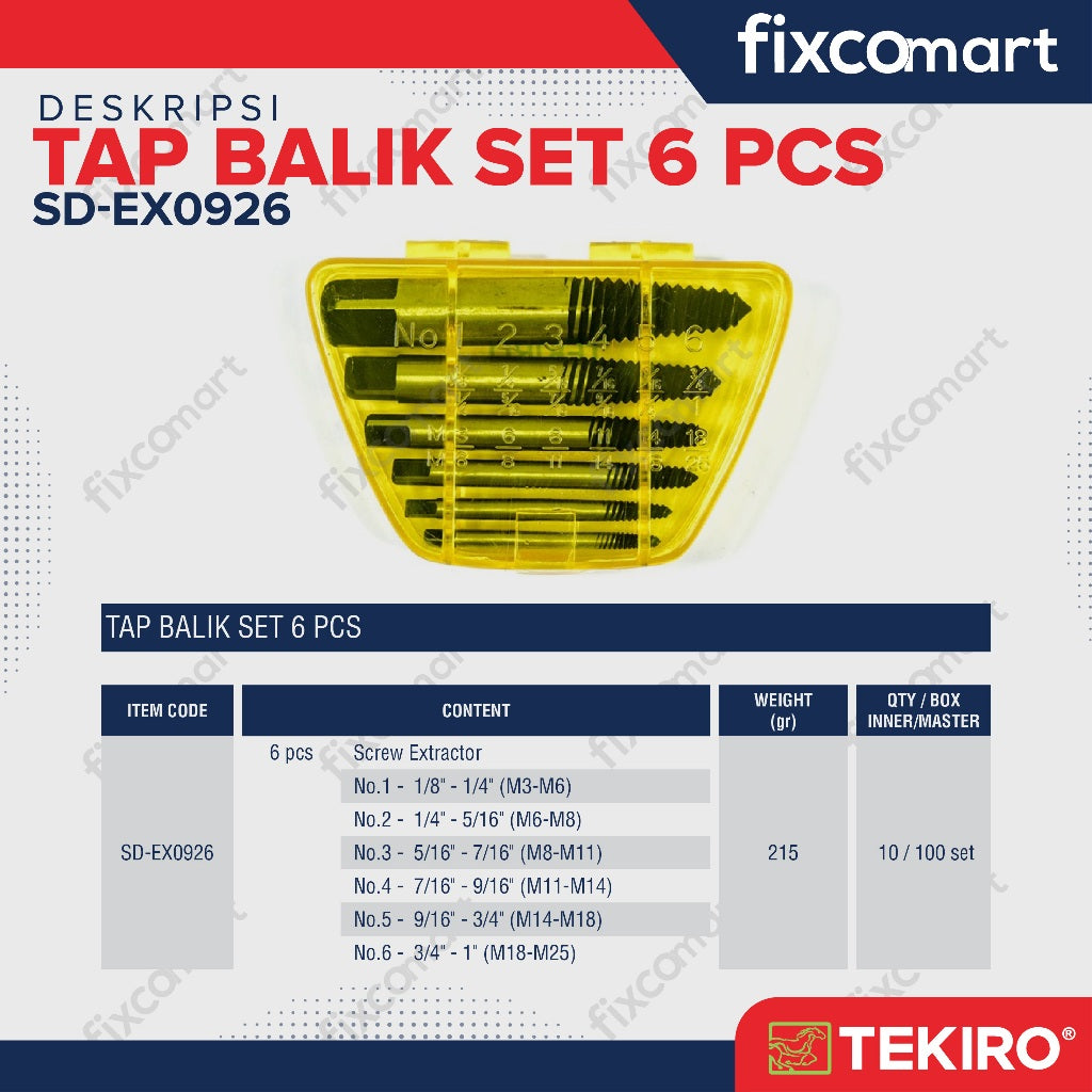 Tekiro Tap Balik Set 6 Pcs / Screw Extractor / Tang Snei