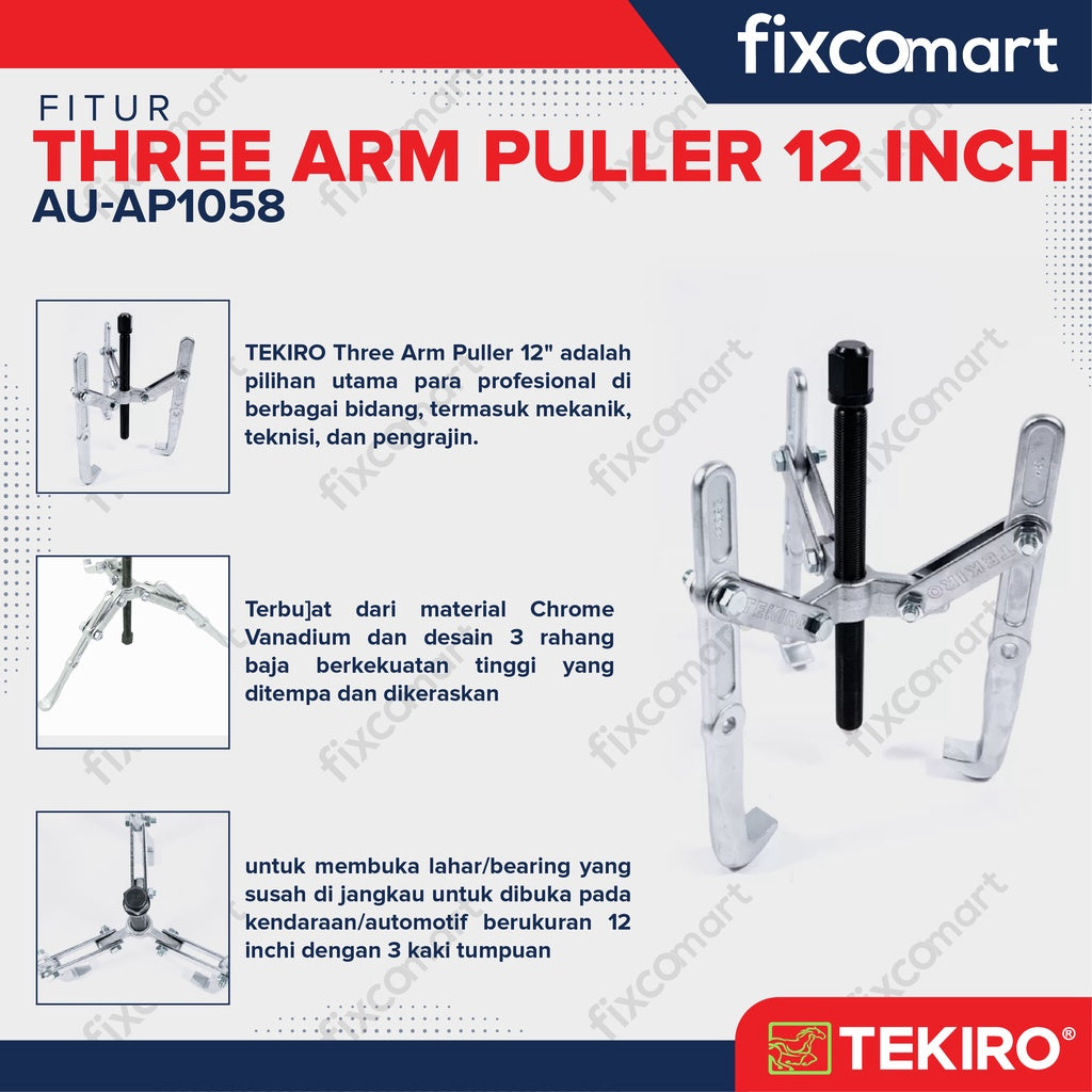 TEKIRO Three Arm Puller 12" adalah pilihan utama para profesional di berbagai bidang, termasuk mekanik, teknisi, dan pengrajin. Dengan alat ini, Anda dapat menghadapi tugas pemisahan dengan percaya diri dan efisiensi tinggi.