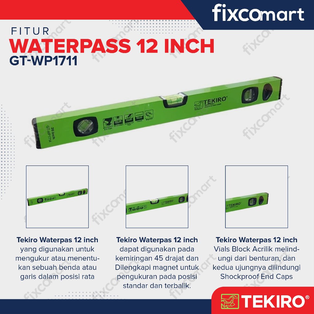Tekiro Waterpass digunakan untuk mengukur atau menentukan sebuah benda atau garis dalam posisi rata baik pengukuran secara vertikal/ horizontal maupun pada kemiringan 45 derajat. Dilengkapi magnet untuk pengukuran pada posisi standar dan terbalik. Vials Block Acrilik di kedua ujungnya melindungi dari benturan.