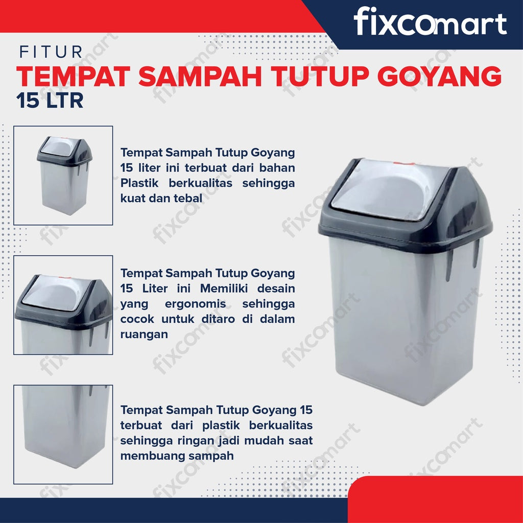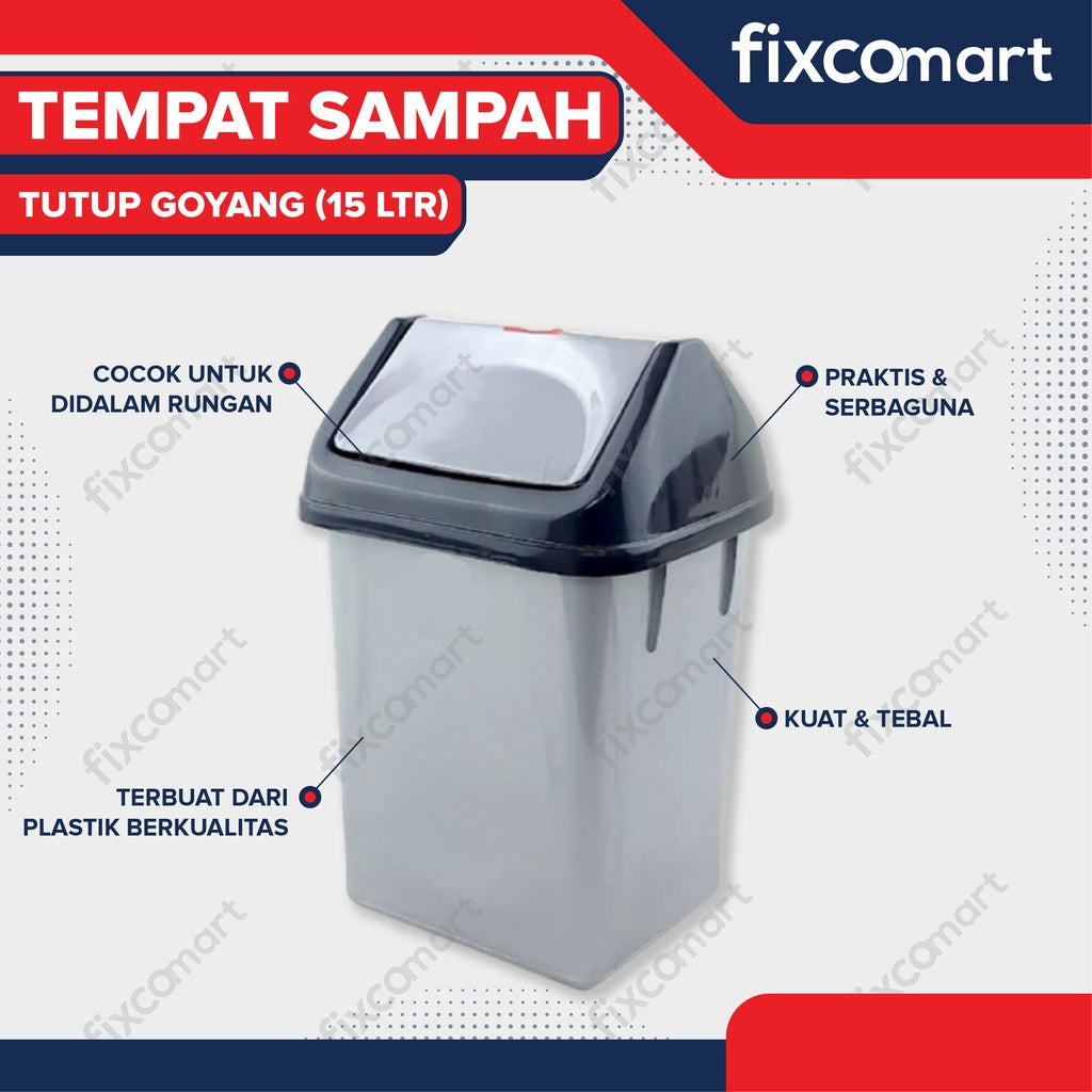 Tempat Sampah Tutup Goyang memiliki desain elegan dan kualitas plastik tebal yang awet. Dilengkapi dengan tutup ayun untuk mencegah bau tak sedap dan ukuran besar yang dapat menampung banyak sampah. Cocok digunakan di dalam maupun di luar ruangan, ideal untuk rumah, kantor, pabrik, restoran, dan sebagainya.